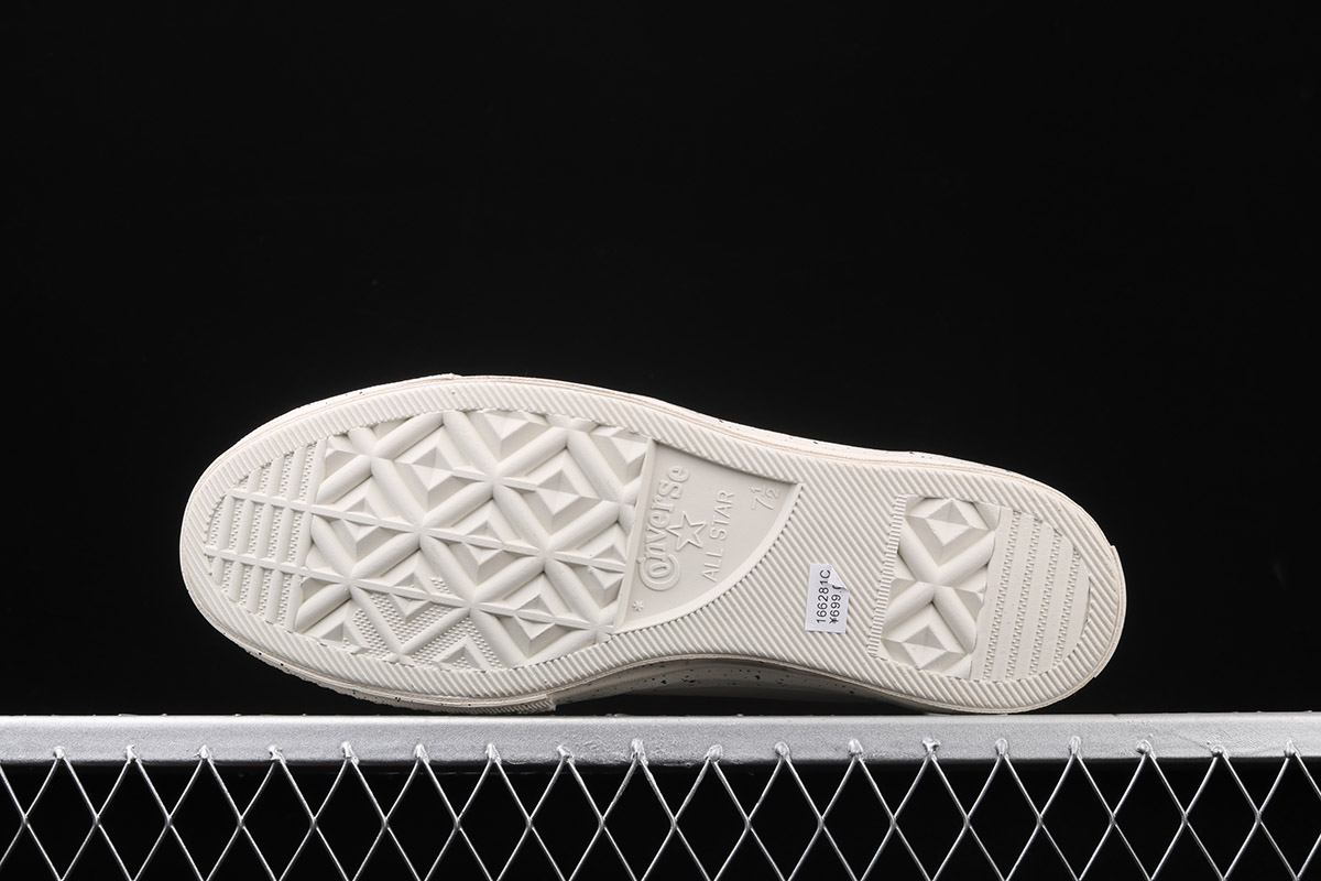 These leather high tops come loaded with mini eyelets and fixed bungee laces that wrap snug around the ankle. A tonal, speckled midsole and toe cap bring just enough edge to the iconic Chuck 70.