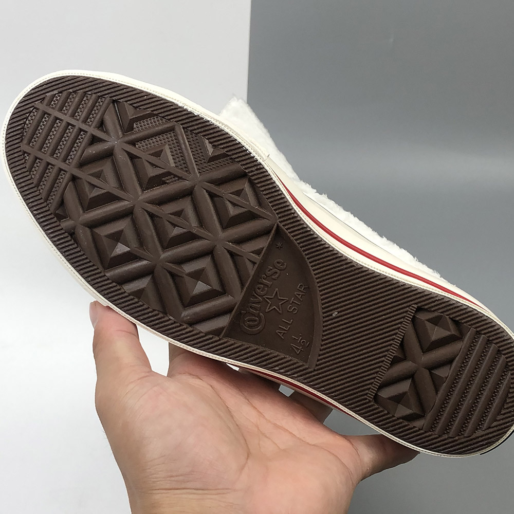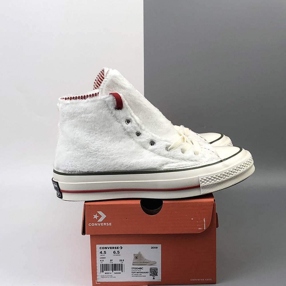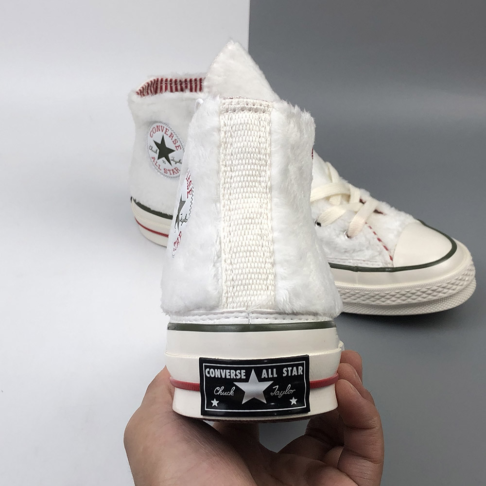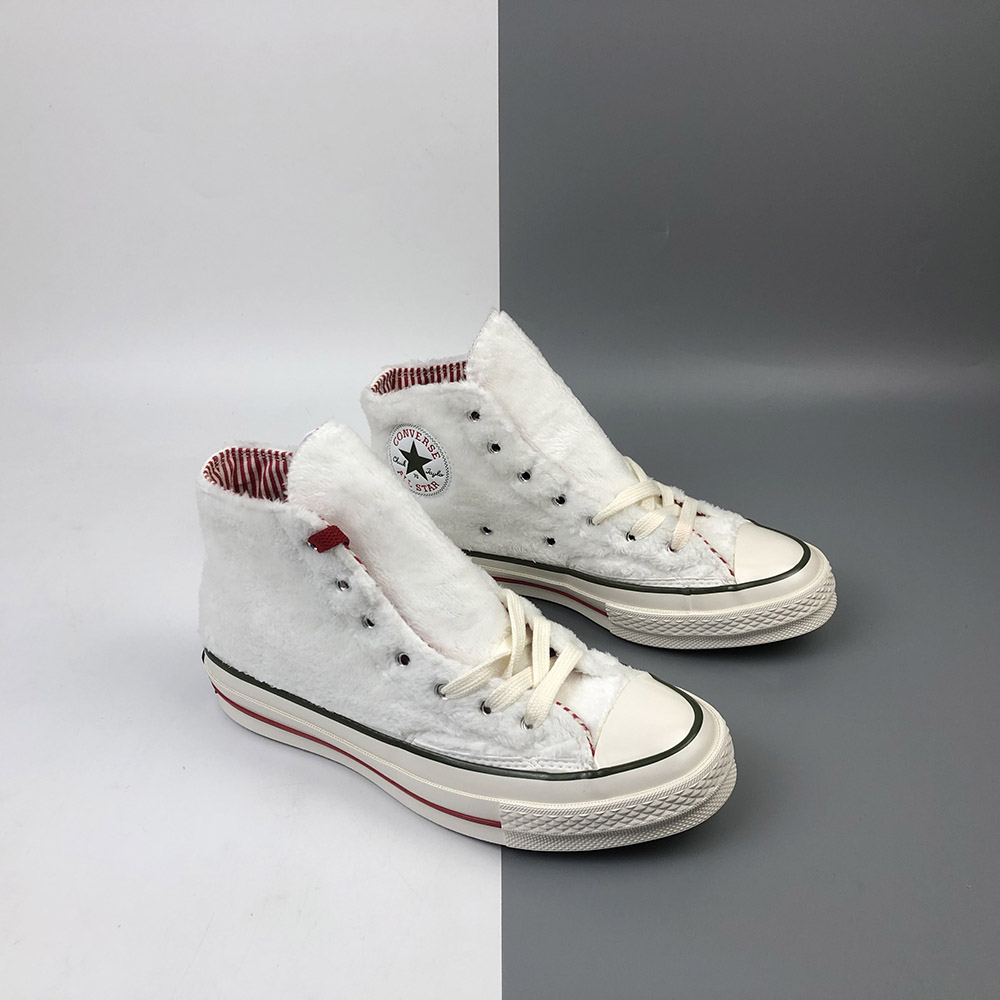 INSULATED ICON. Just in time for winter’s dropping temperatures, warm and fuzzy sherpa takes over the best ever Chuck 70. Designed to keep you cozy in style, we’ve topped off the design with red and green pinstripes to celebrate the season. A candy cane-inspired lining and bright red laces tie the look together in party-ready style.
