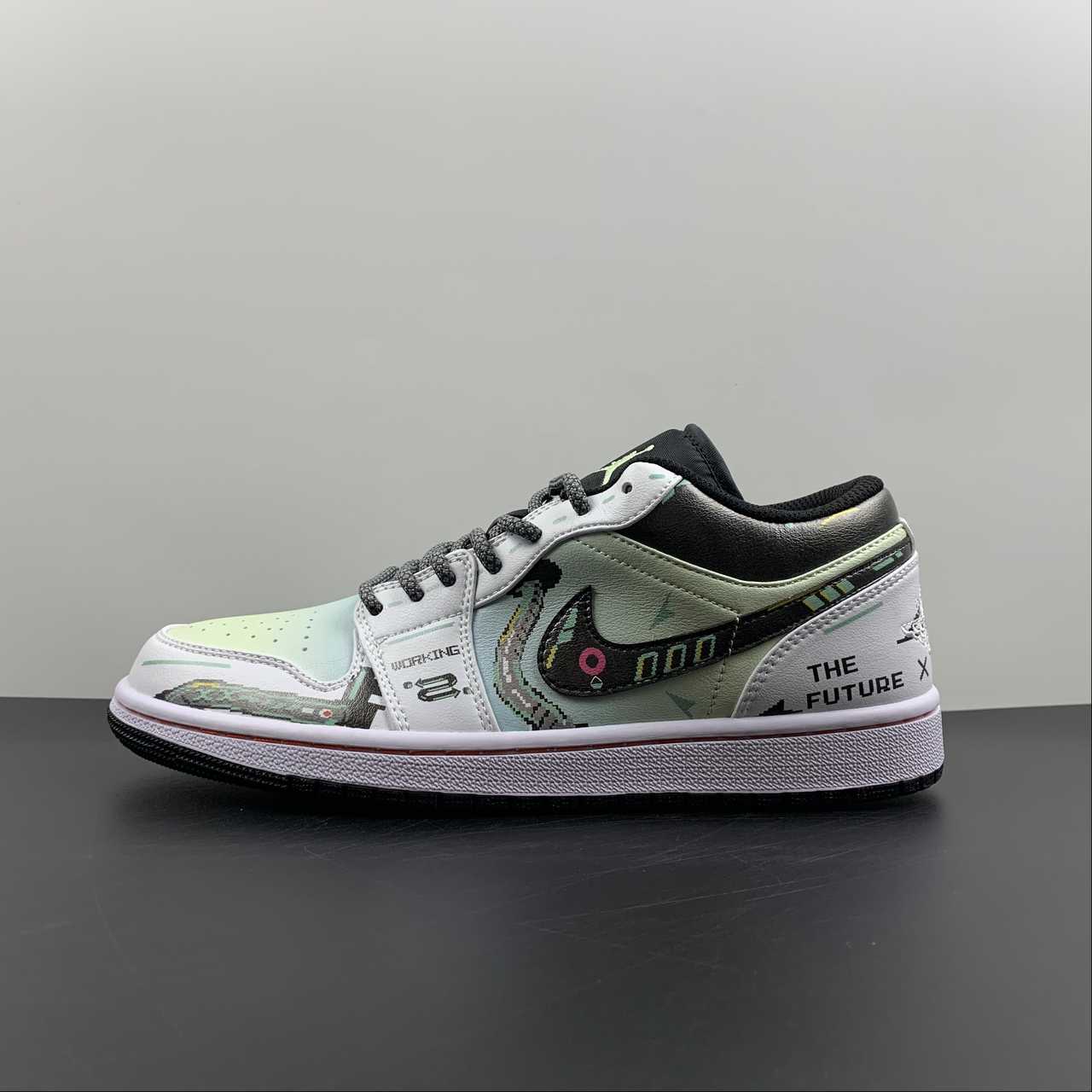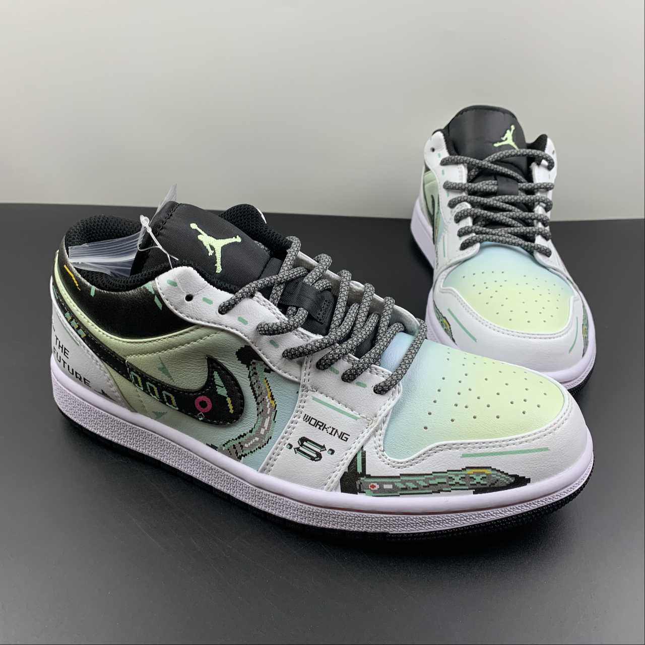 Custom Air Jordan 1 Low White Black Volt For Sale