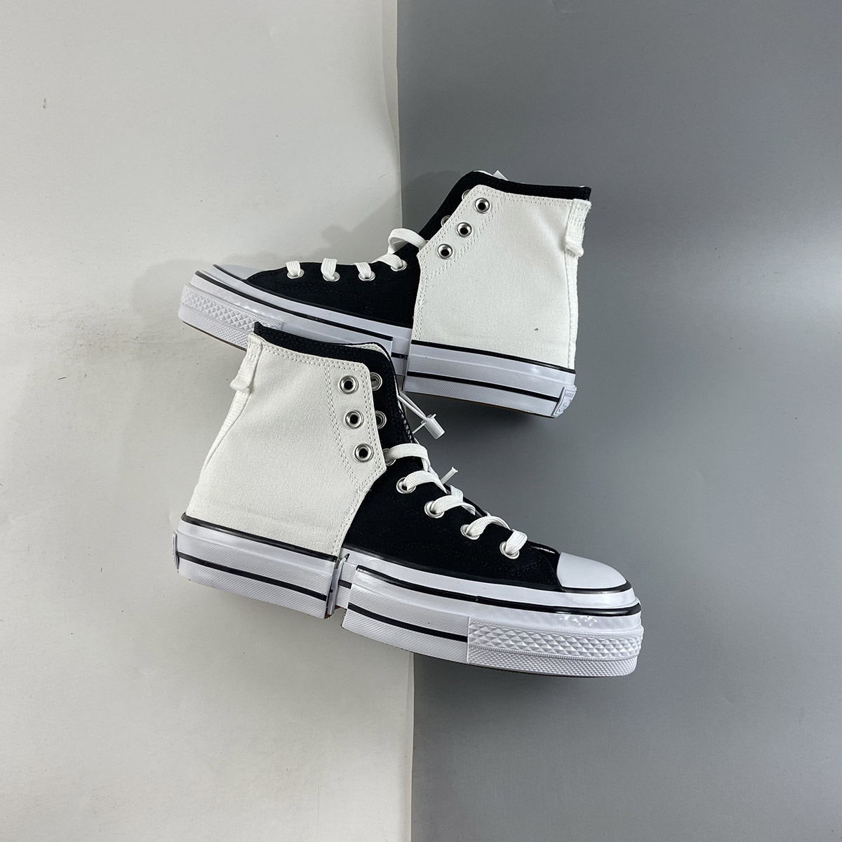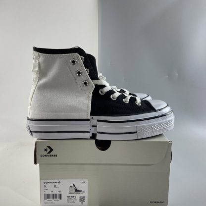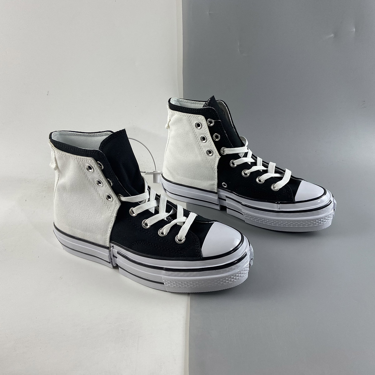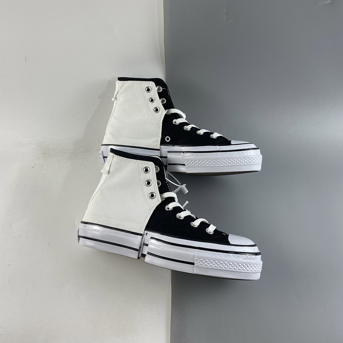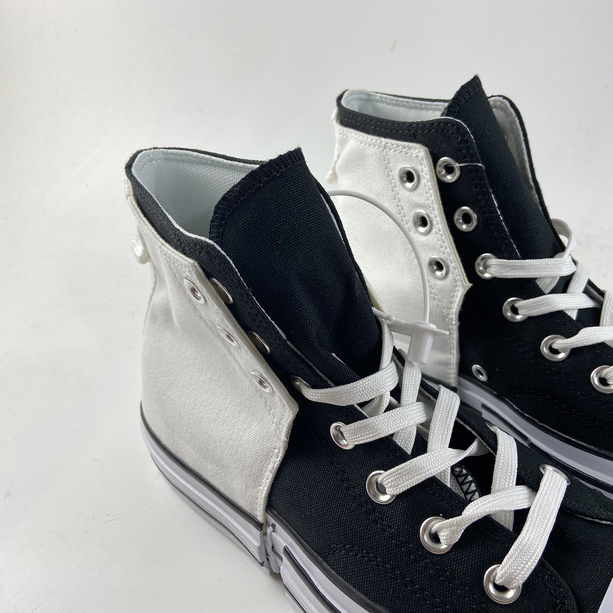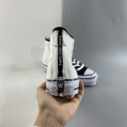 Crafted from durable canvas and leather, the high sneaker takes on the double stacked look throughout for a head-turning appearance. Branding is kept minimal, with just the Converse star logo and Feng Chen Wangs text logo at the heel tab. All the usual features make an appearance, making this release both timeless and innovative.