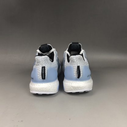 Dressed in a wintry-like color scheme. This adidas Ultra Boost features a White Primeknit upper with speckled detailing, along with Blue contrasting accents. A White Boost midsole with Black detailing and rubber outsole completes the design.