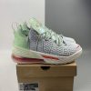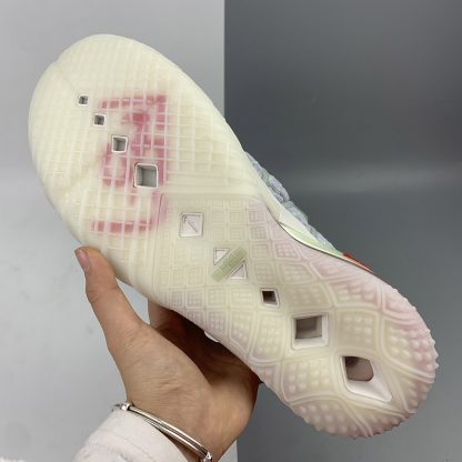 Modeled after a jade seal, most of the shoe is dominated by a light green palette, livened up by a mix of contrasting materials — like the silhouette’s hi-tech KnitPosite 2.0 fabric, ballistic nylon and rubber overlays, to mention a few. Placed atop its geometric tongue is a set of semi-translucent bubbles that appear along the forefoot. A red mini-Swoosh is embroidered around the toecap, complemented by tiny red accents near the eyelets, while a jade-colored rear quarter rounds off the shoe’s uppers. All of these details rest over an articulated midsole, engineered with a full-length Zoom Air unit that maximizes energy return to support explosive movement on the court.