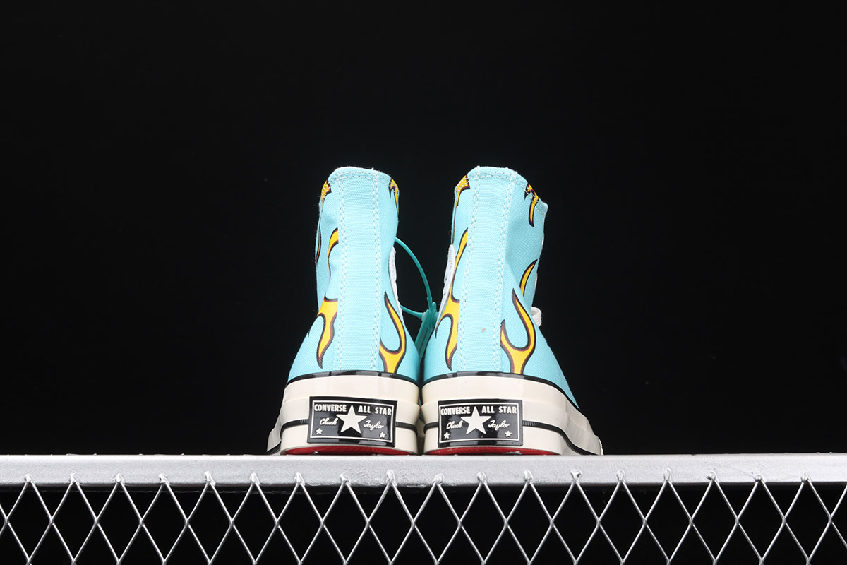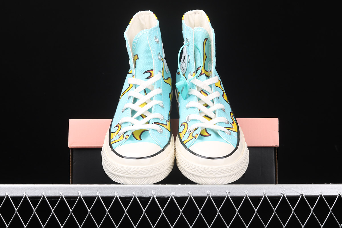 Since joining up with Converse after leaving his past relationship with Vans, music stalwart Tyler, The Creator has been able to stretch his legs much more liberally, drawing floral motifs atop the One Star and even dressing down the iconic Chuck 70 with his signature and playful styling. Brightened up with pastel tones characteristic of the artist himself, the latter pair arrives in deeper connection to his history as it pays homage to the iconic album cover of “Cherry Bomb.” Simple, as is best, the uppers bright blue tones accent with toony flames as if ripped right from the Golf Wang print. Elsewhere, the design is largely kept close to original templates with extra branding only showing up by way of the insole prints and flower-covered outsole tread.