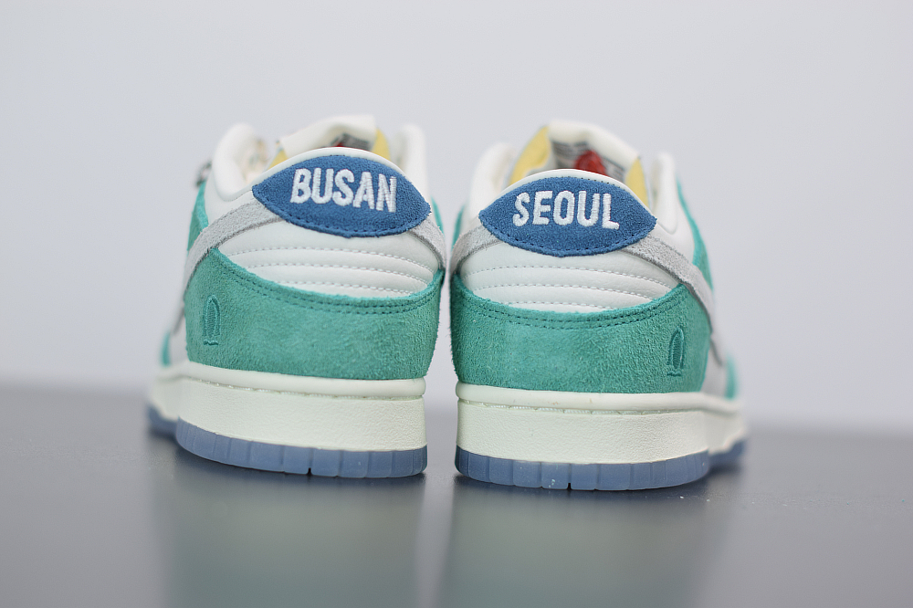 Releasing exclusively in Kasina, this “Neptune Green” Nike Dunk Low collab pays homage to the road signs that lines the Gyeongbu Expressway, the main highway between Busan and Seoul. The shoe features a white leather upper that’s paired with green suede overlays while “Busan” and “Seoul” are embroidered on the heel.
