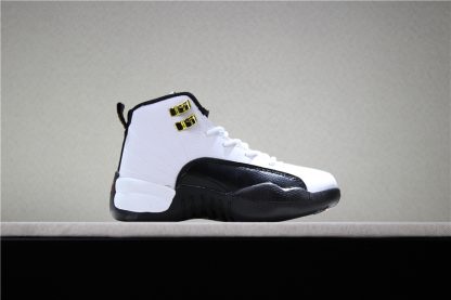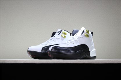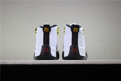 Recalling the iconic color scheme of White, Black, Taxi and Varsity Red. The classic Air Jordan 12 features a White leather upper with Black textured overlays, inner liner, heel and outsole. Speaking of the outsole, it features a Black and Yellow pattern on its carbon fiber reminiscent of NYC taxi cabs. Red accents can be found on the Jumpman branding on its heel and toe, while having Gold upper eyelets for a nice luxurious touch.