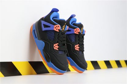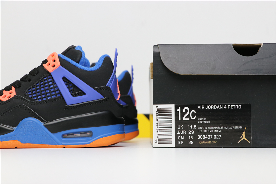 Set to drop sometime later this year, this never-before-seen AJ4 colorway features a black suede upper with black overlaying blue mesh on the panels and tongue. More blue hits the wings, heel tab, lining and midsole while orange completes the look on the winged eyelets, outsole and tongue and heel branding.