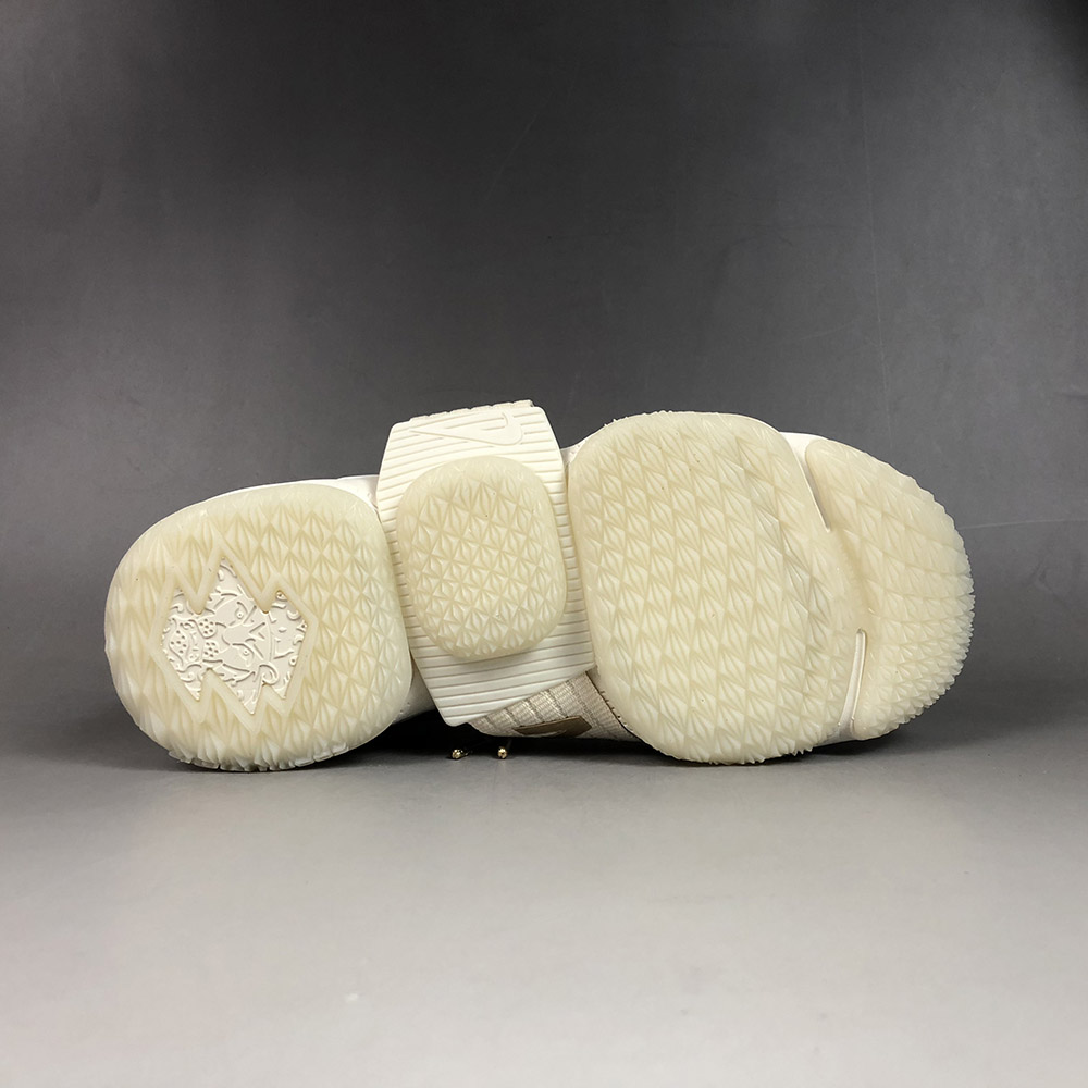 Going with a more stylish look. This Nike LeBron 15 features an extended sock-like ankle collar and includes 3 sets of options. Full strap, half strap, no strap. Front and back pull tabs completes the fashion-forward style.