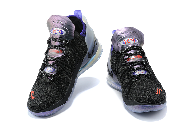 Mbappé’s colorway of the Nike LeBron 18 comes dressed in a Black Knitposite 2.0 upper sitting on a translucent sole. An iridescent heel clip houses a special Black LeBron x Kylian graphic printed on a Purple backdrop. The Air system on the tongue is designed with both LeBron’s and Kylian’s logos, and a “Chosen Two” ambigram logo. A double Swoosh sits on the forefoot and on the sock liners, where you’ll also find a basketball x football graphic on the left and a LeBron x Kylian ambigram on the right.