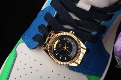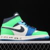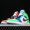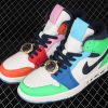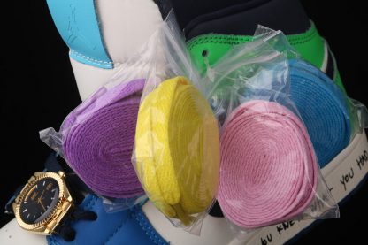 Dressed in a mix of White, Black, Half Blue, and Habanero Red. This mid-top Air Jordan 1 comes in a mismatch color blocking with the left shoe featuring two shades of Blue and Green while the right shoe sports Orange and Pink. Both will include White on the panels and toe while having Black on the Swooshes and collar. It comes constructed in a mix of leather and neoprene highlighted with text across the midsole, three sets of laces, and a watch lace jewel atop a translucent outsole.