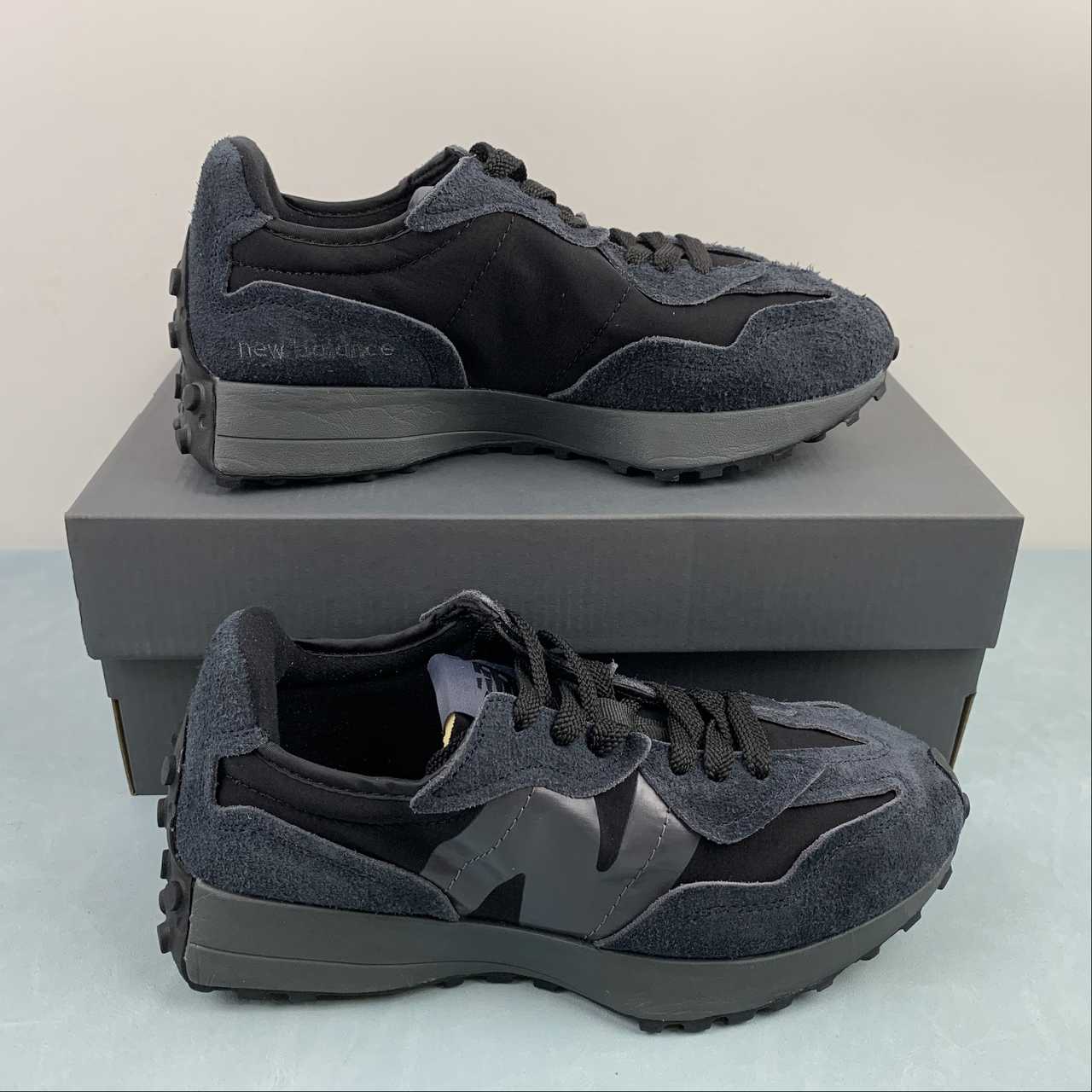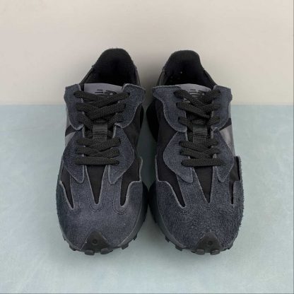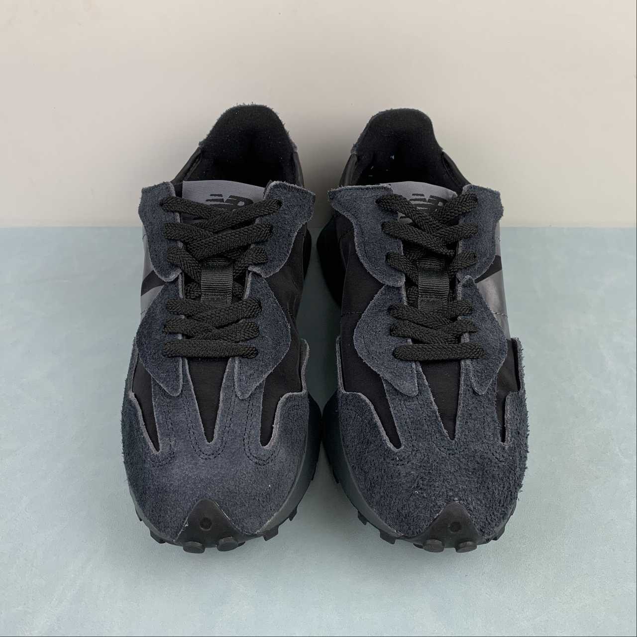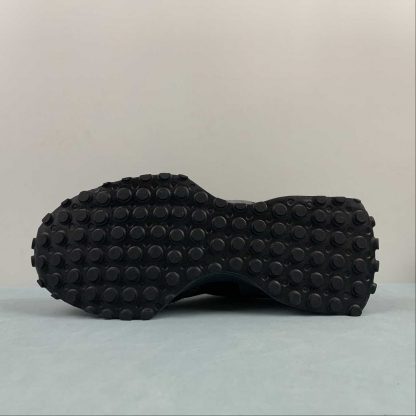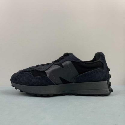 The New Balance 327 Phantom features a rugged twist to the classic, sneakerhead-favourite silhouette. This iteration starts with a solid, black textile base that’s designed with a stylishly dishevelled pale grey “N” branding with visible white stitches at the side panels. The semi-shaggy black suede overlays and exposed tongue foam further its scruffy vibe. This New Balance 327 finishes with classic details such as the comfortable flared midsole, a grippy lugged outsole that provides extra traction and the rubber heel wrap — all of which are in black to maintain the shoe’s understated style.