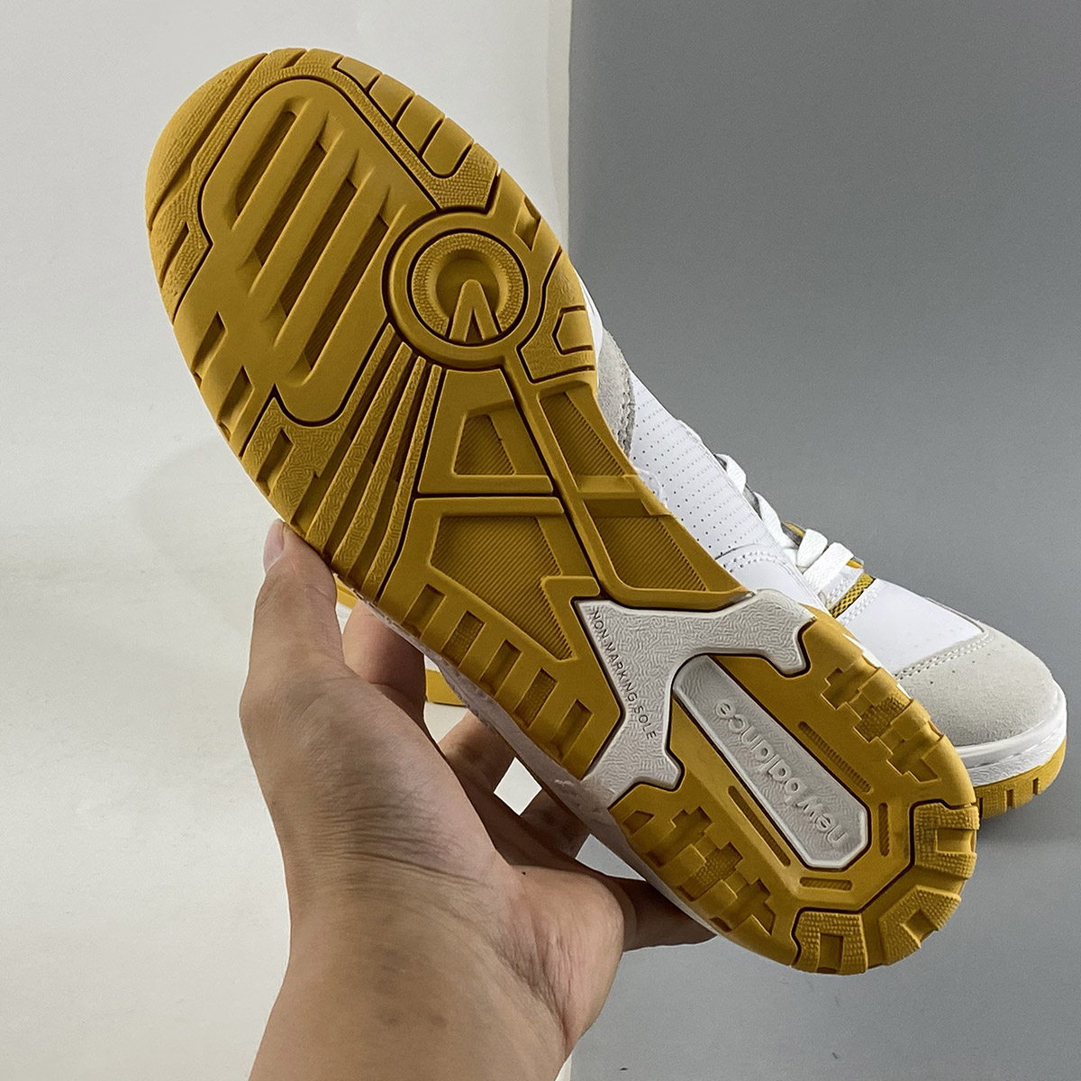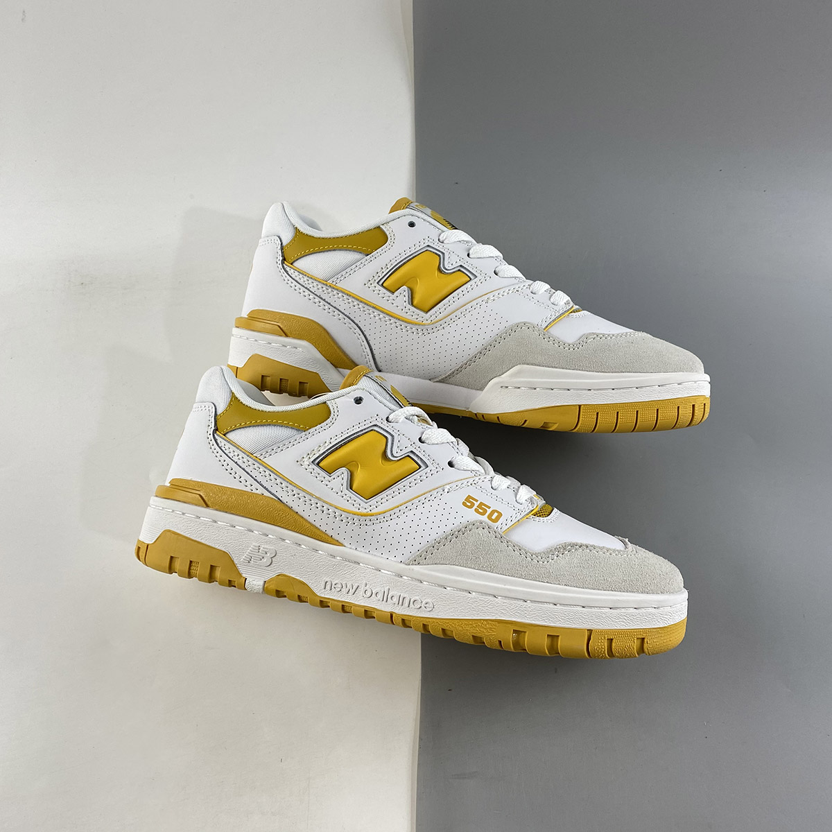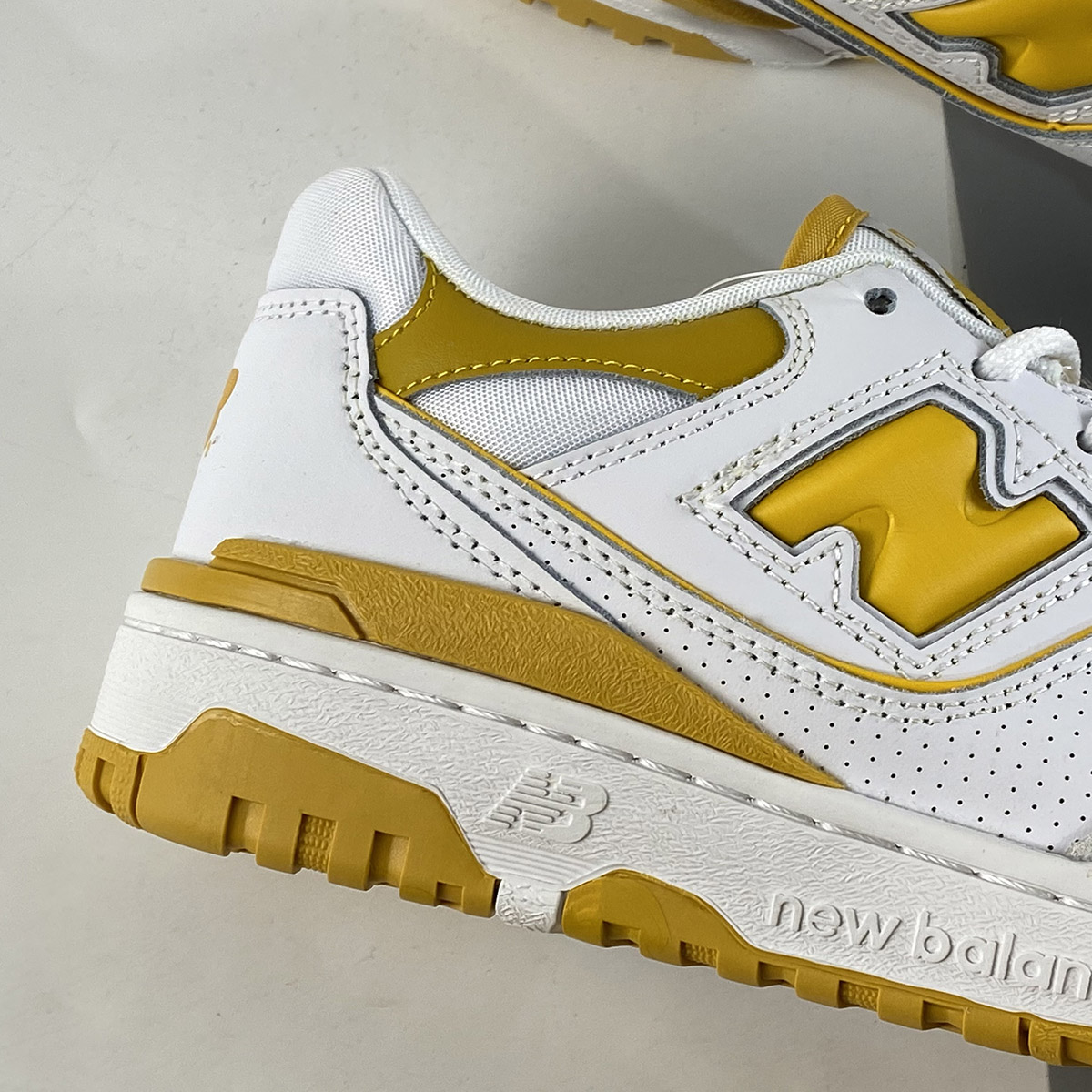 Very much like the design back in its original debut date, the pair showcases a two-toned upper for a clean and streamlined look. The perforated leather panels across the uppers indulge in a crisp white tone, contrasted with Varsity Gold tinge marking the collars and other distinct segments of the New Balance 550.