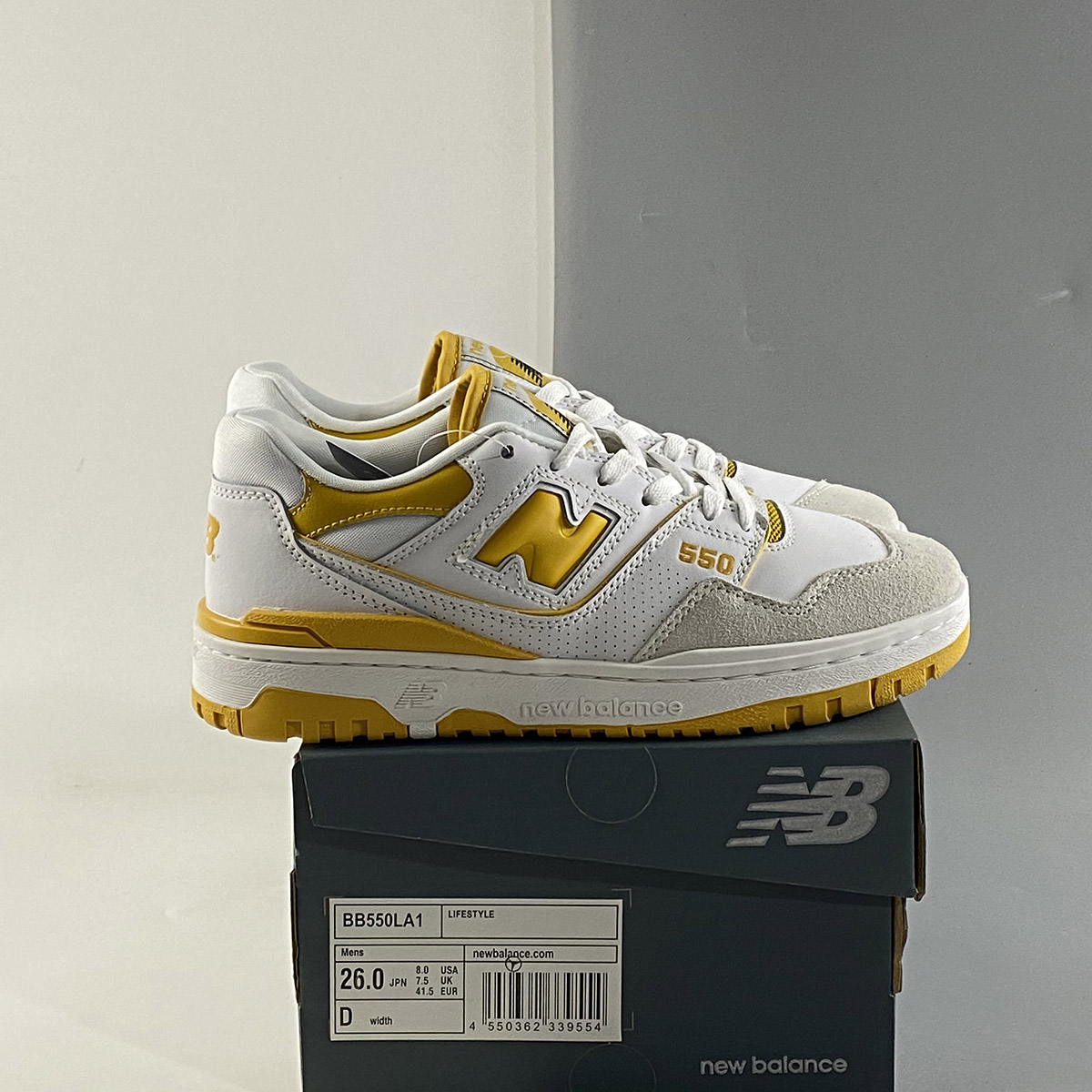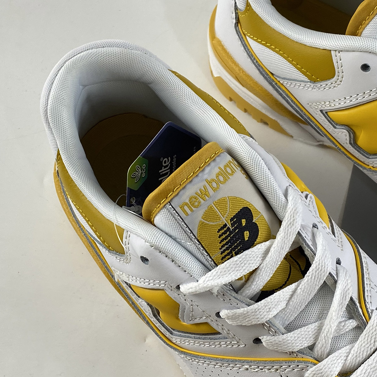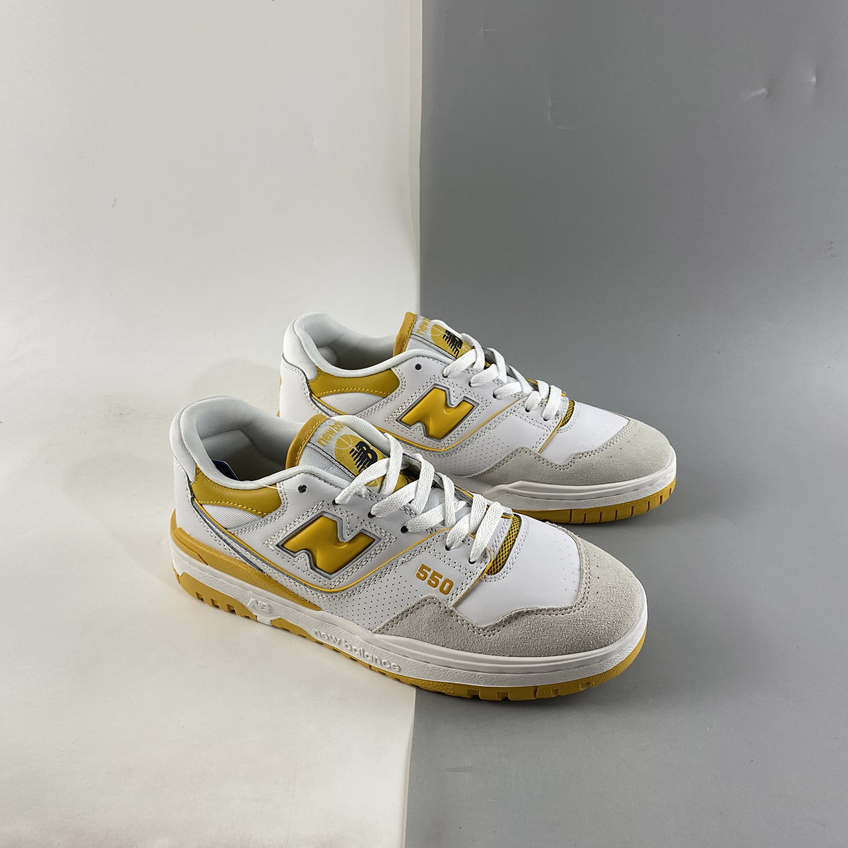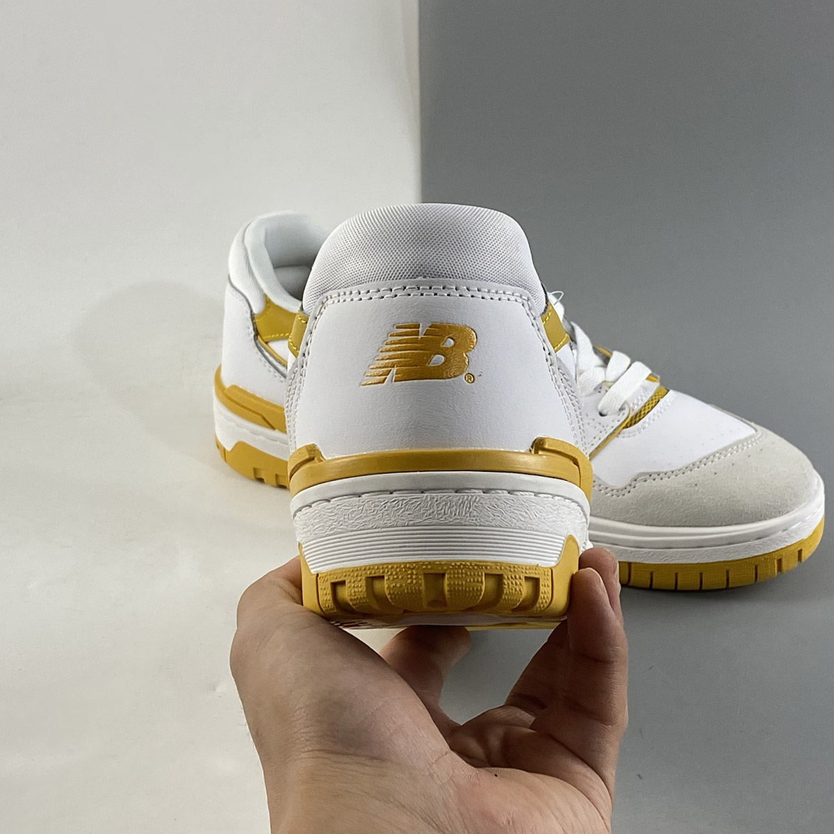 Very much like the design back in its original debut date, the pair showcases a two-toned upper for a clean and streamlined look. The perforated leather panels across the uppers indulge in a crisp white tone, contrasted with Varsity Gold tinge marking the collars and other distinct segments of the New Balance 550.