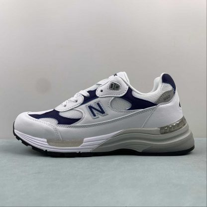 A muted down and simple color option of the New Balance 992 is up for grabs now with this pair seen below which utilizes a White/Navy color combination. This offering of the New Balance 992 gets covered in a heavy dose of white all over the upper in leather, mesh along with navy pigskin suede overlays seen throughout the upper. More white detailing is then seen on the laces, tongue, and inner liner while down below we see white and grey on the midsole which comes with ABZORB cushioning.