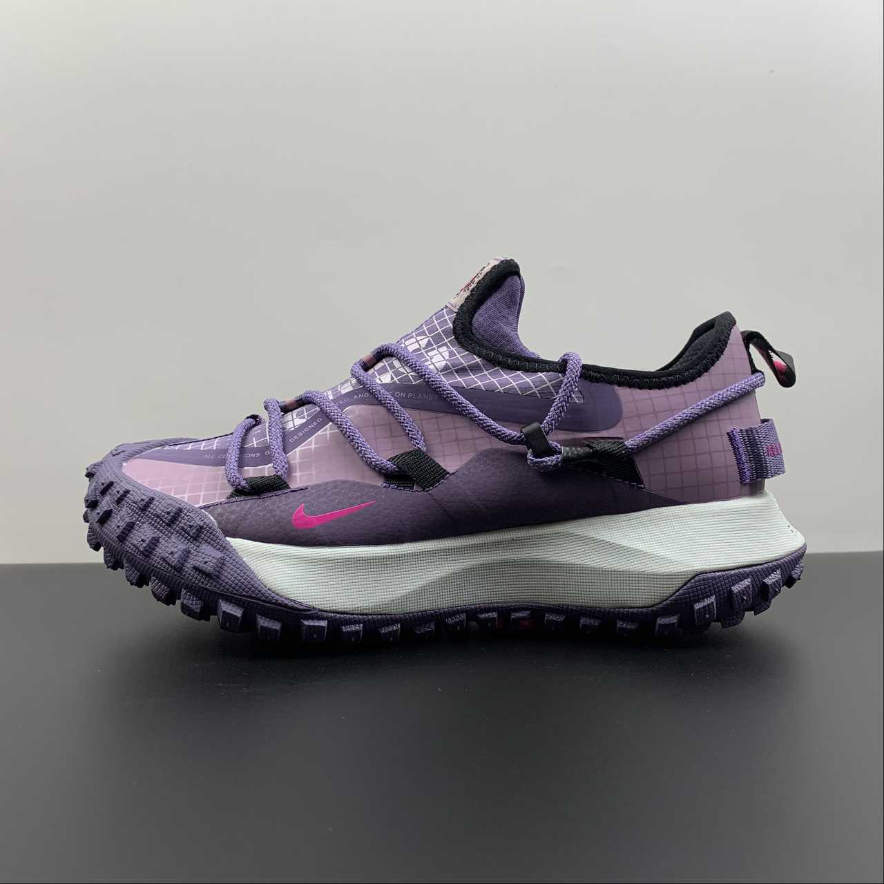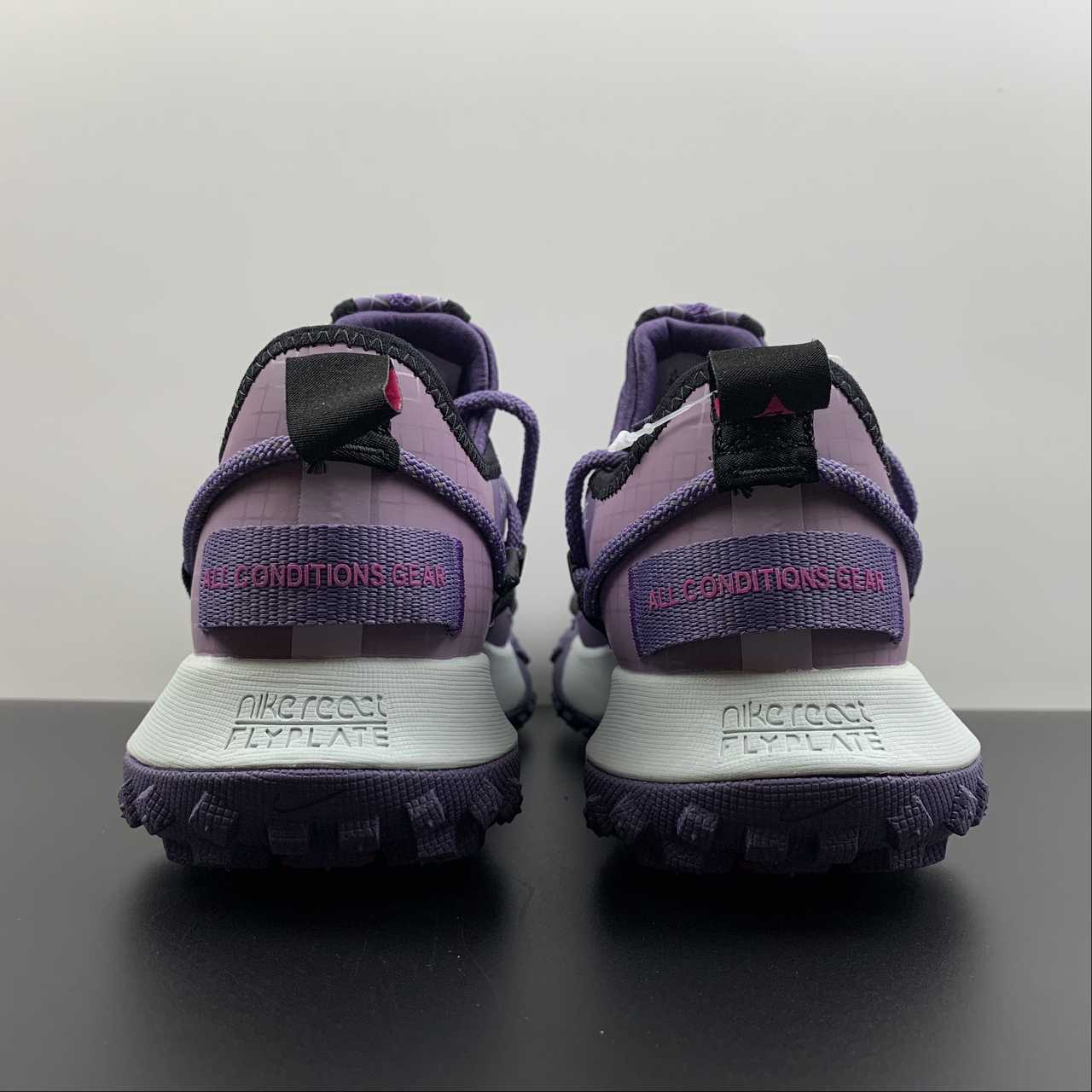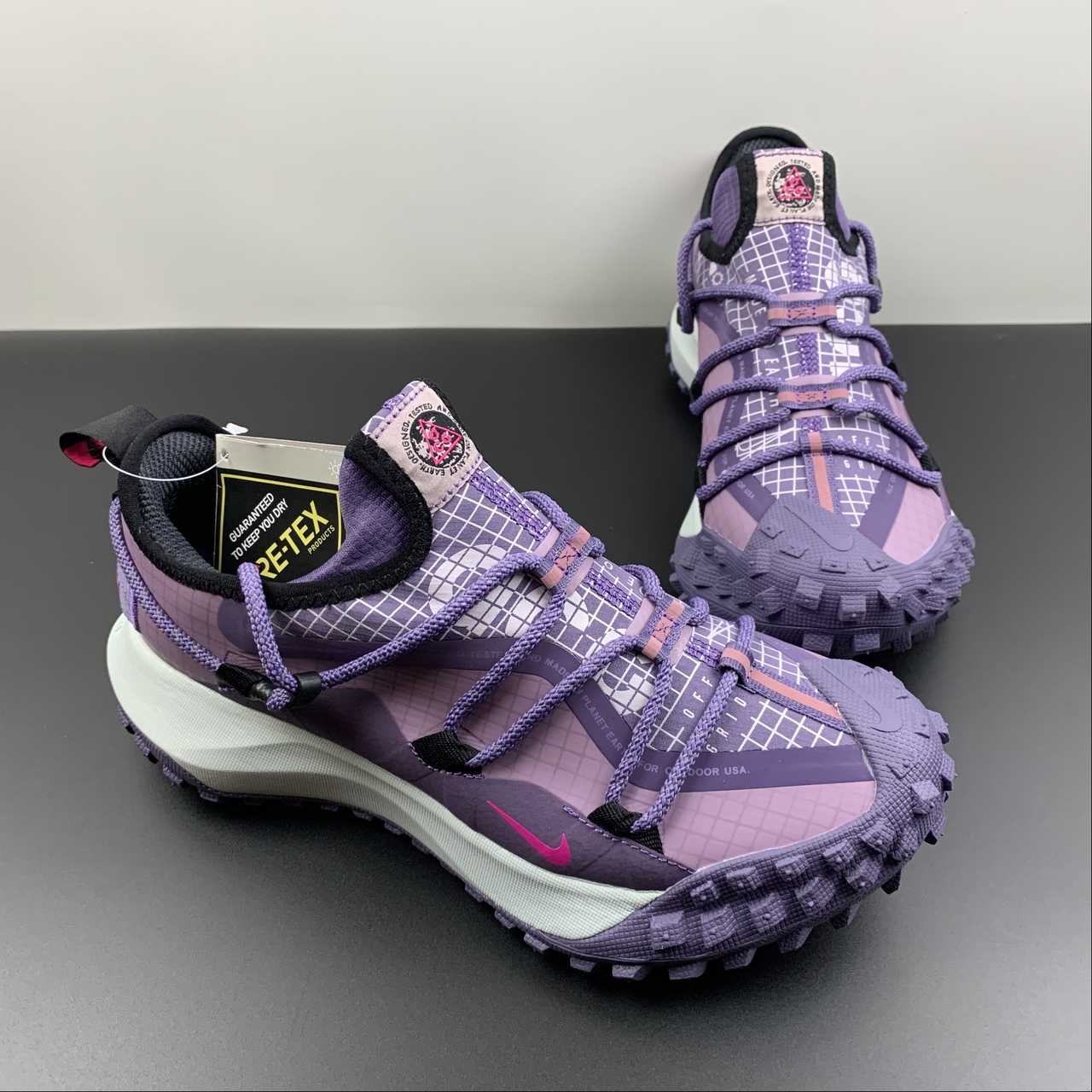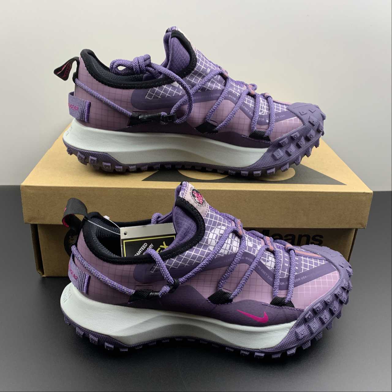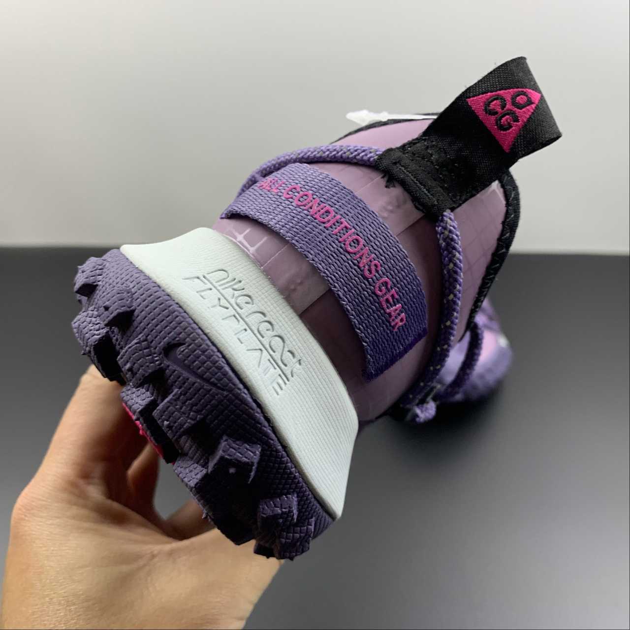the silhouette appeared in a “Canyon Purple/Amethyst Rock” colorway that harkens back to the eye-catching aesthetics the Swoosh applied to their hiking models back in the 1980s. the upper is entirely a light purple colour, and the lavender shades make it up and create a silhouette too pretty to wear. Additionally, the laces are purple and provide a slip-on feature. Furthermore, the sock liner is black to provide colour contrast.