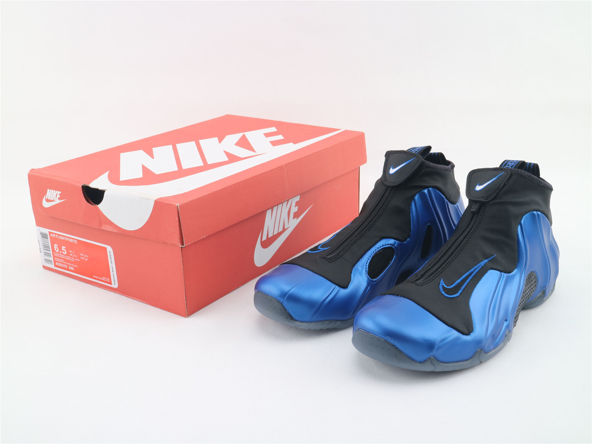 The upper is crafted with neon royal Foamposite, along with a black neoprene shroud, with a zipper down the middle and the laces enclosed. Additional details include a stitch-outlined royal Swoosh.