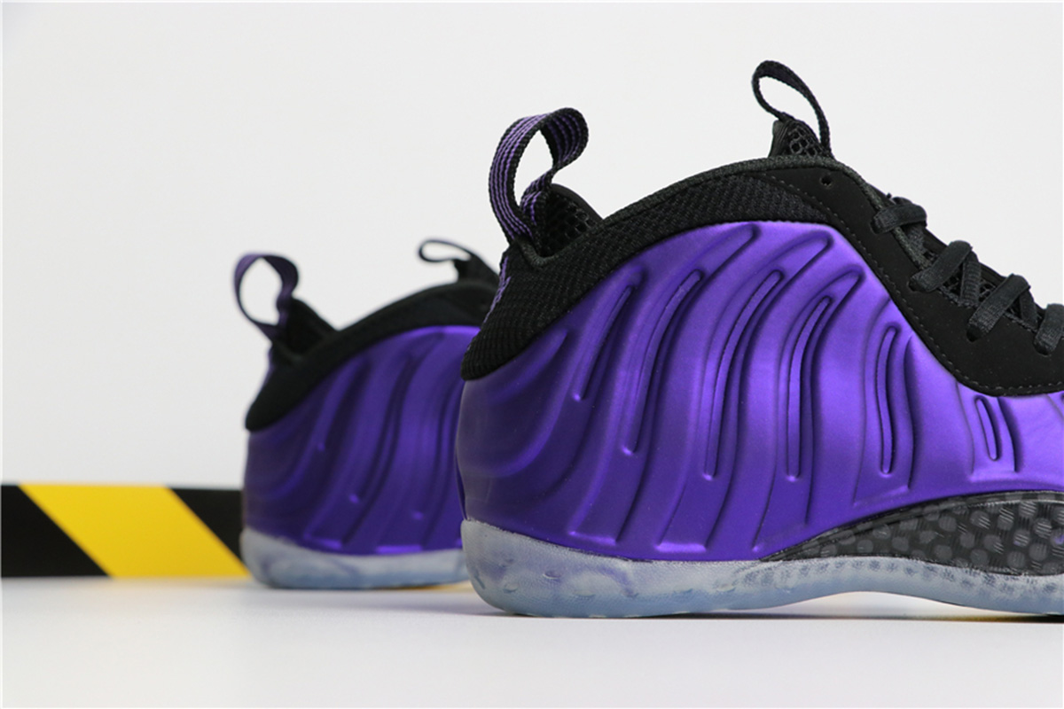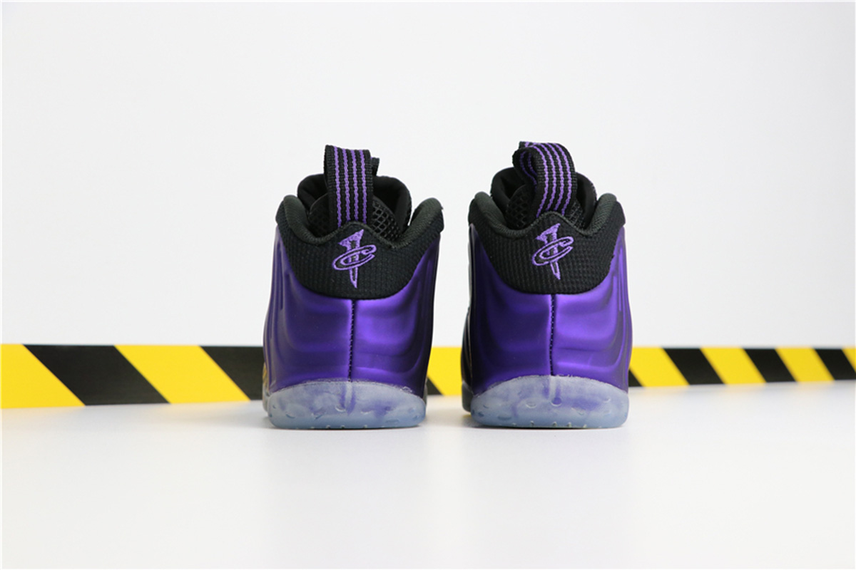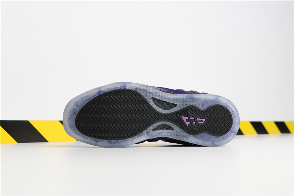 Dressed in a Black and Varsity Purple color scheme. This Nike Air Foamposite One features a Purple Foamposite shell, along with Nike Swoosh and 1 Cent logos. A Black upper, inner bootie, matching carbon fiber and an icy outsole finishes off the design.