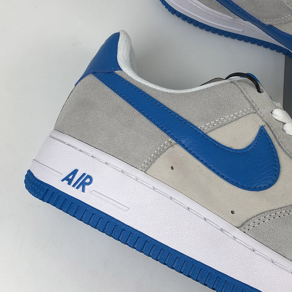 As you can see this Nike Air Force 1 Low features a Grey Fog, Light Photo Blue and White color combination. Highlighted with White leather across the upper while Grey suede lands on the overlays. Finishing the look is Photo Blue on the Swoosh, tongue label, heel, ‘AIR’ on the midsole and rubber outsole.