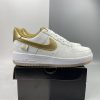 Crafted from what looks to be premium leather and suede, the classic paneled design of the Air Force 1 remains intact, with Nike’s iconic Swoosh logo present across either side in gold for a timeless look. The beige colorway is contrasted with white and gold accents for a well-considered look, while details such as the perforated toe box and padded ankles channel true AF1 spirit.