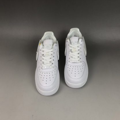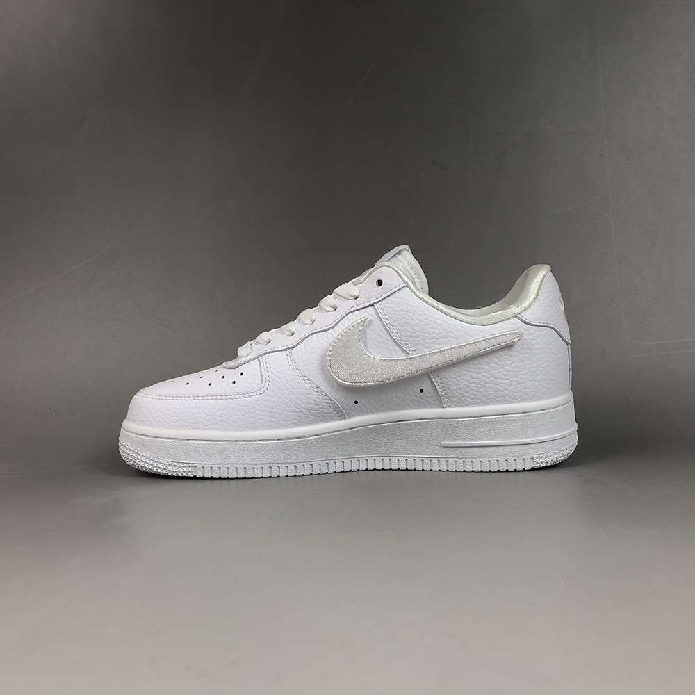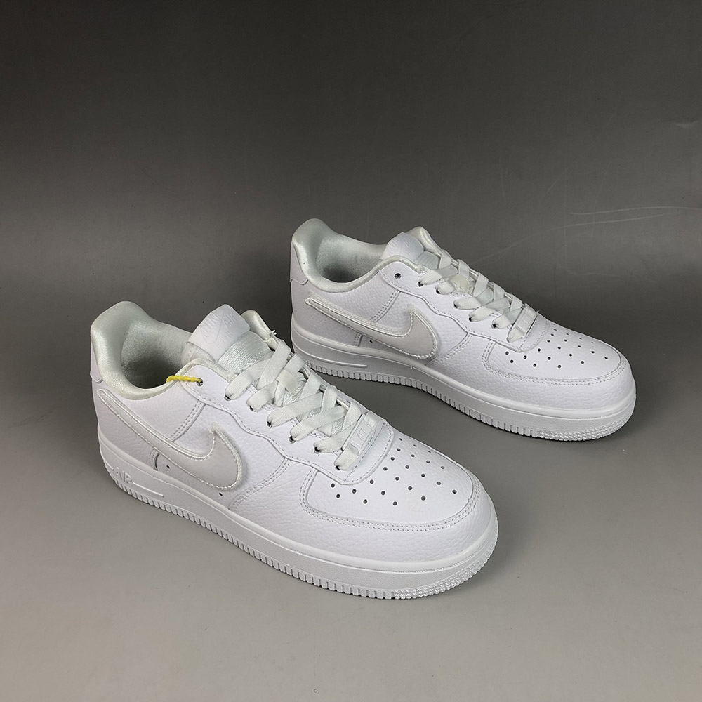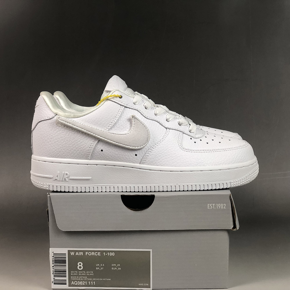 Featuring a super clean white colourway crafted from premium leather, four options of Nike’s Swoosh logos are offered in iridescent, metallic silver, stitched embroidery, and fabric adhesive finishes. Complementary white lacing and branding can be found throughout the silhouette, and to round the design off, the Air Force 1-100 White sits on top of a durable rubber midsole.