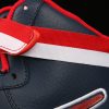 An compelling team also deserves alluring shoes, and the Wizards — a team whose colors lend themselves exceptionally well to a retro look— have been included in Nike’s Air Force 1 NBA pack by way of an AF1 High. The shoe calls upon a navy leather for the upper, while accents are provided by a red patent leather midfoot swoosh outlined in white, and a two-tone striped red and white strap. The pack’s customary holographic heel detailing is present, and the look is completed by a classic white midsole and navy outsole.