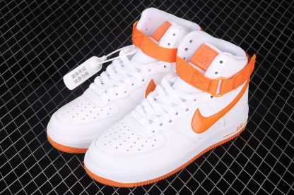 This Nike Air Force 1 features White tumbled leather across the upper while perforations land o the toe and panels. In addition we have Orange placed on the Swoosh, ankle strap, heel, insole and across the rubber outsole which completes the look.