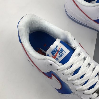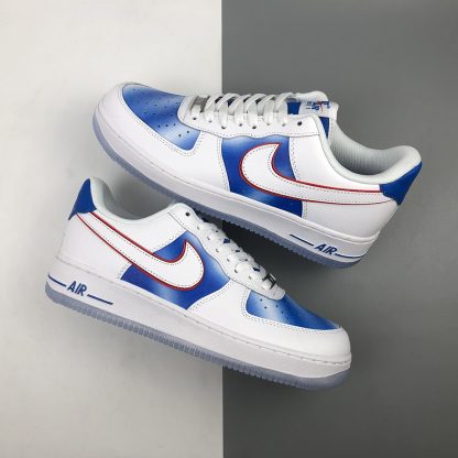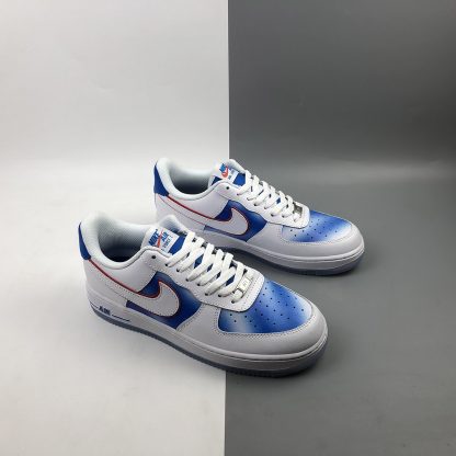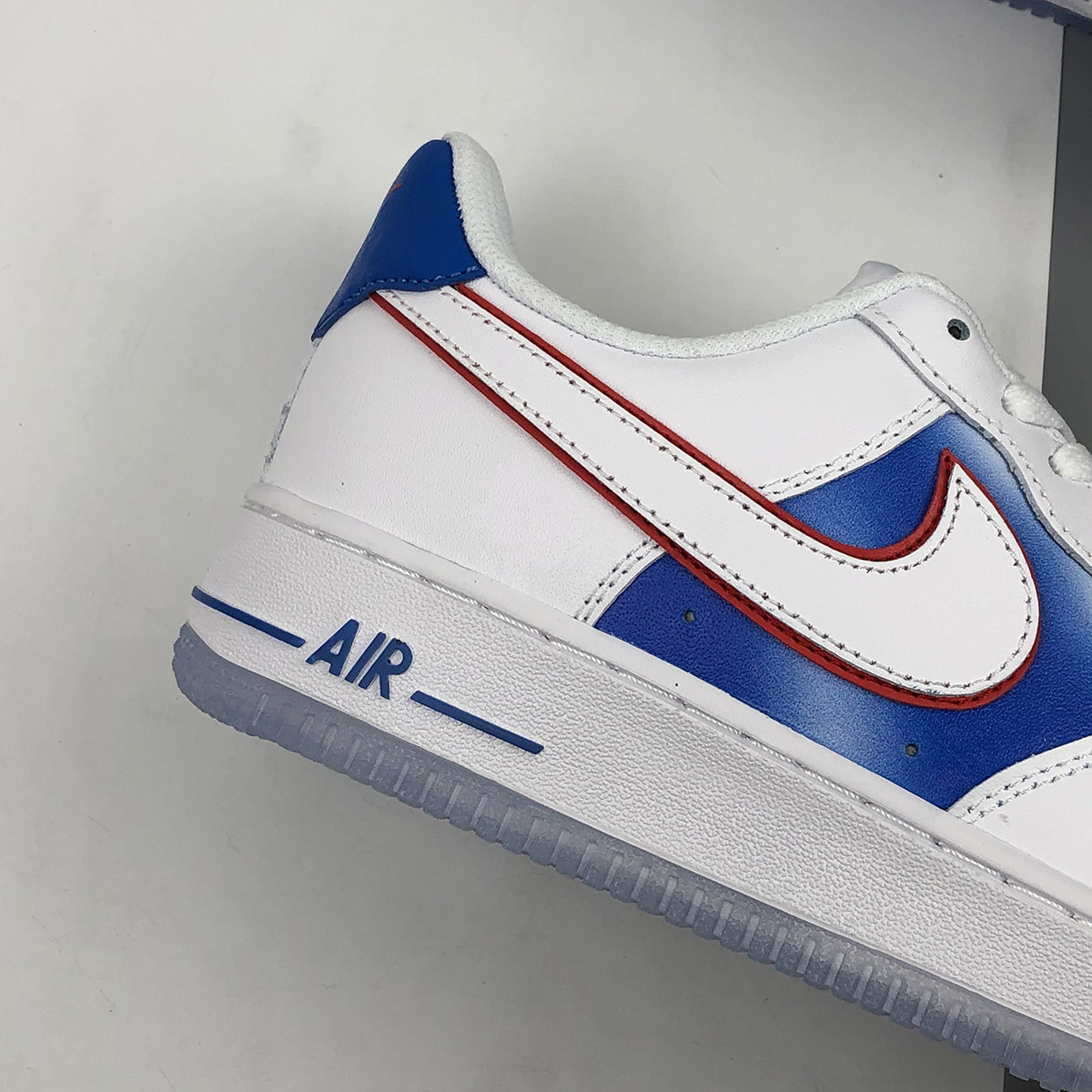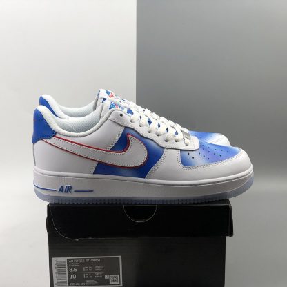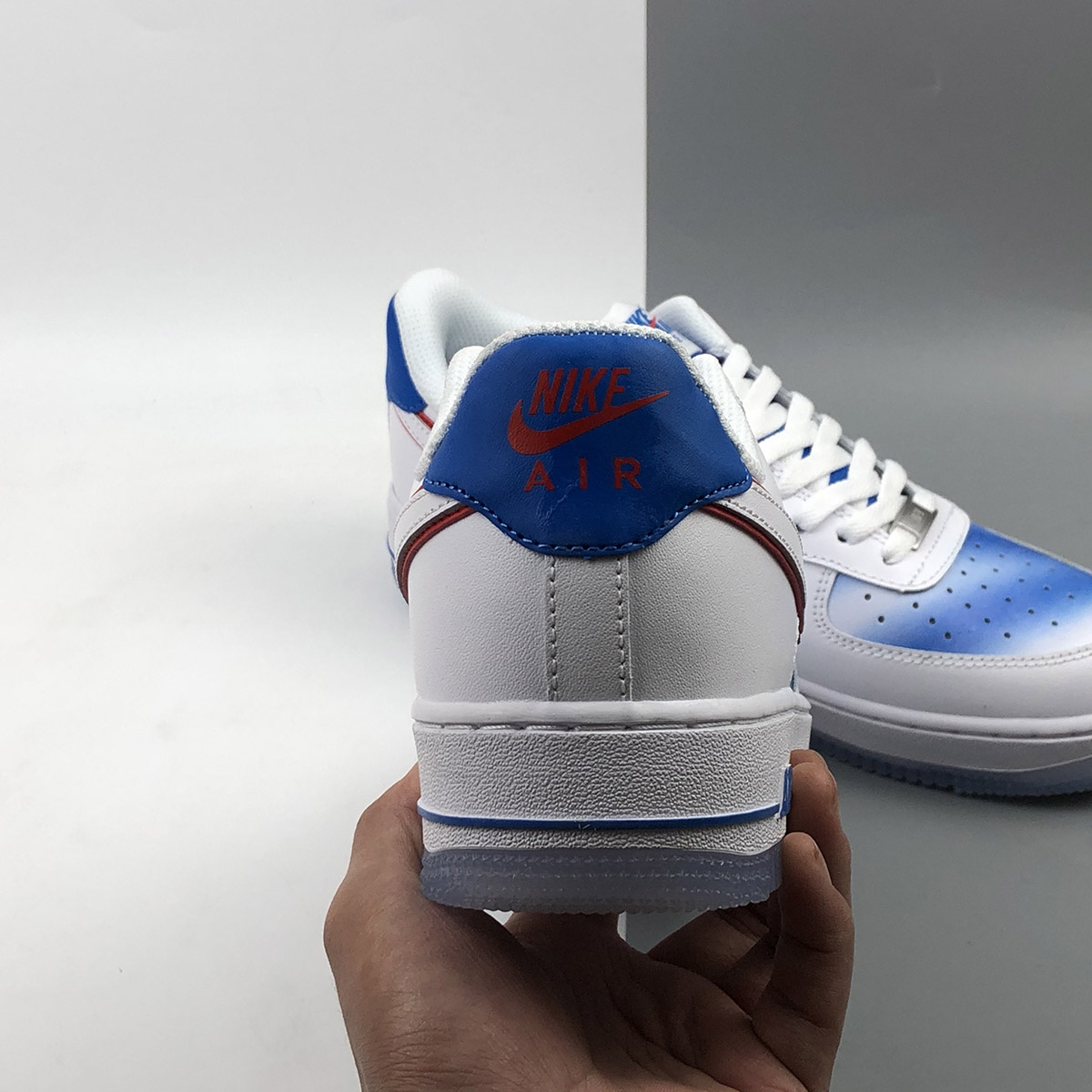 this Nike Air Force 1 Low comes with a cloudy Blue and White airbrush across the toe box and panels while the shade of Blue also lands on the tongue, heel, and insoles. Following, we have Red outlining the Swoosh, Swoosh on the tongue, branding on the insoles, and heel branding. Other details include a White midsole and an icy translucent outsole.