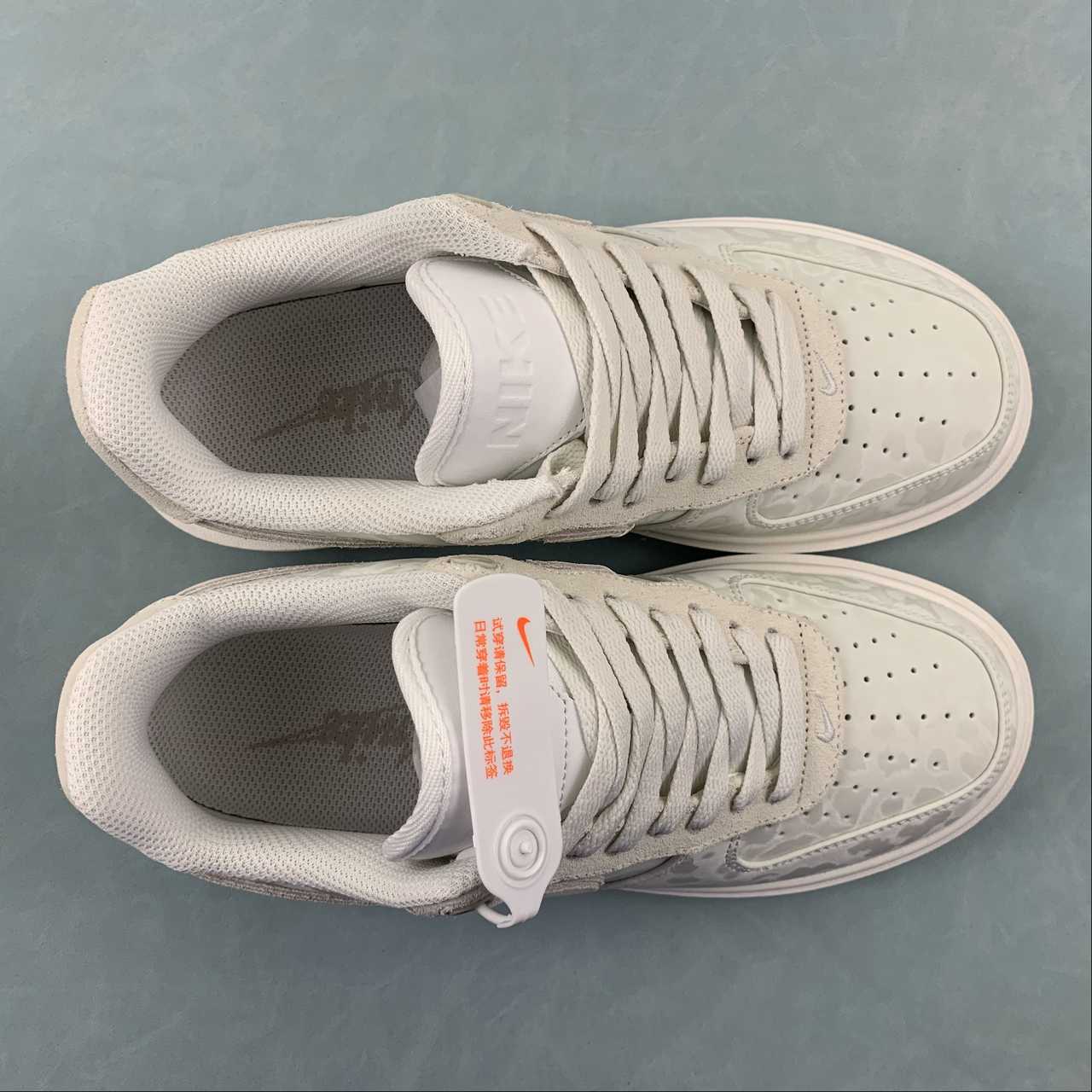 the Swoosh’s extra stitching blends into its backdrop much like the sole whose platform mimics the dual neutrals the rest of the palette is comprised of. In regards to branding, the pair is also quite minimal, opting for a range of debossed and embossed fixtures. Suedes and leathers, then, construct the rest of the shoe, alternating between the aforementioned “Sail” and a much brighter white shade.