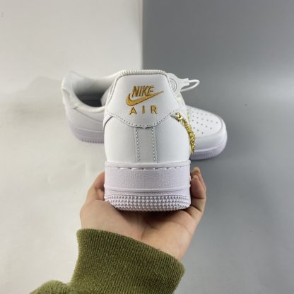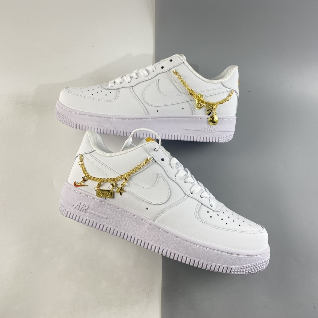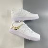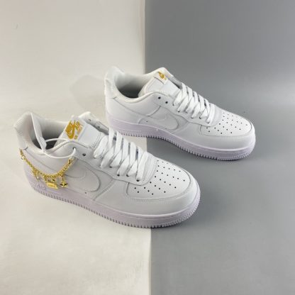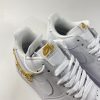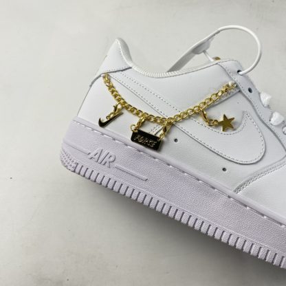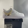 This Nike Air Force 1 Low feature White leather on the upper while matching tumbled leather hits the Swoosh logos. Next, Black appears on the liner, heel, and ‘AIR’ text on the midsole. The collection’s signature graphic print hits the tongue and insoles while the ‘Peace, Love, Swoosh’ graphics land on the lateral and text behind the tongues. Finally, a White midsole and matching rubber outsole finish the look.