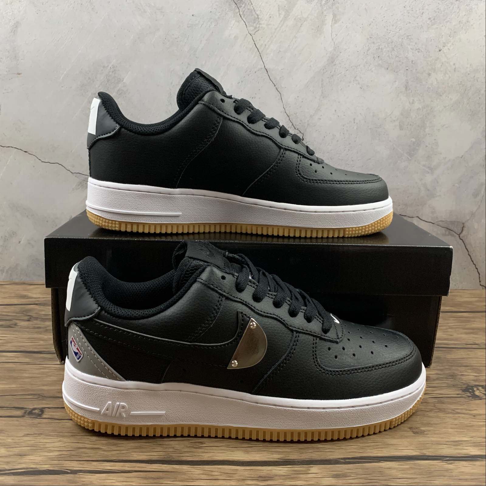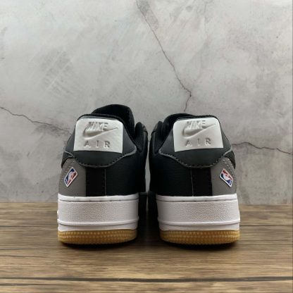 This offering of the Nike Air Force 1 features a Black buttery leather upper with mesh tongues, Grey textile on the heel, White taping overlay in the rear, and Silver plating on the lateral Swoosh. A White midsole atop a Gum rubber outsole and NBA branding on the tongues and lateral heel completes the design.