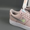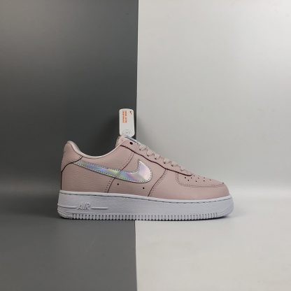 This Nike Air Force 1 comes with Pink tumbled leather across the upper while White covers the midsole and rubber outsole. Sticking out the most is iridescent on the tongue label and Swoosh across the panels.