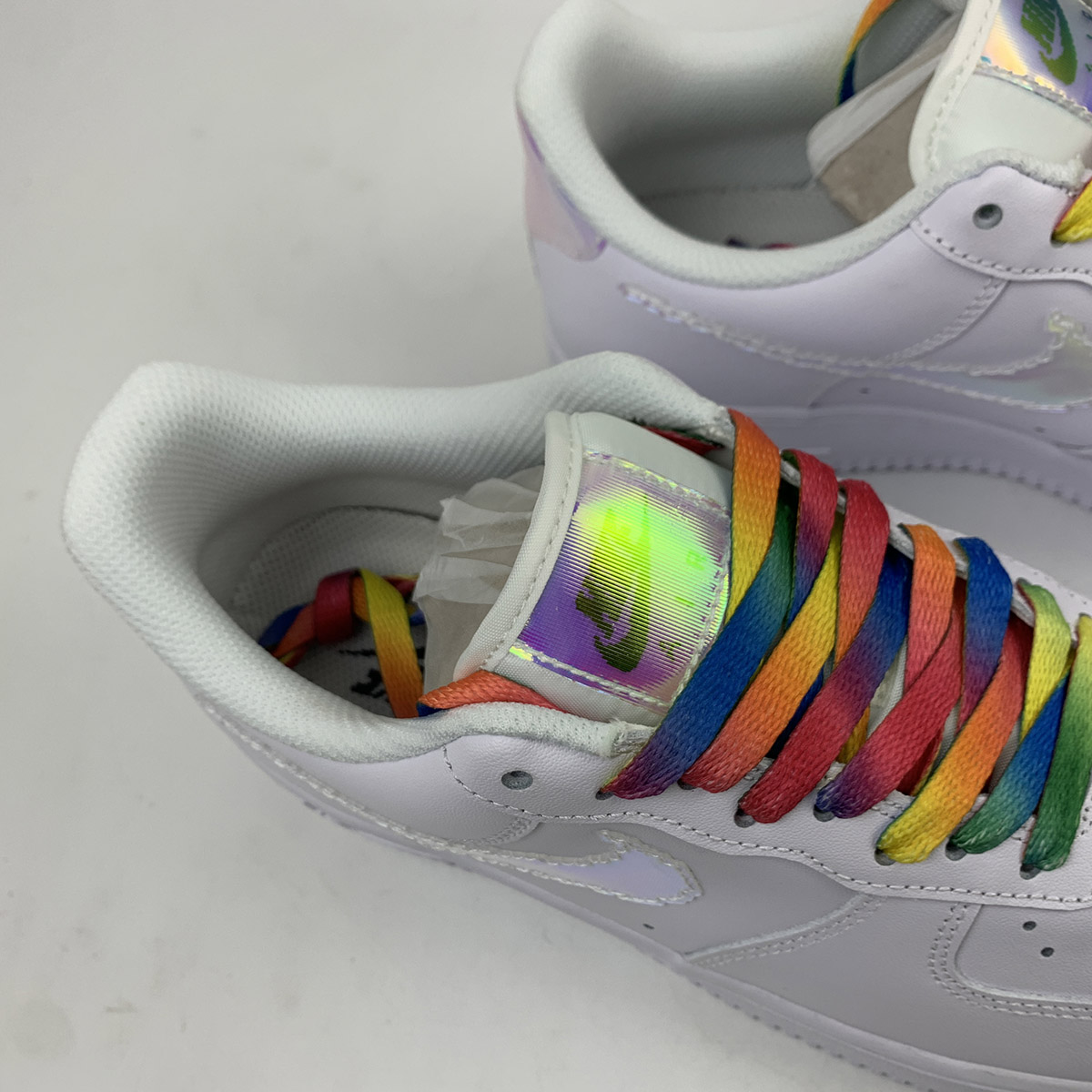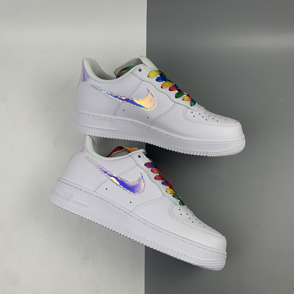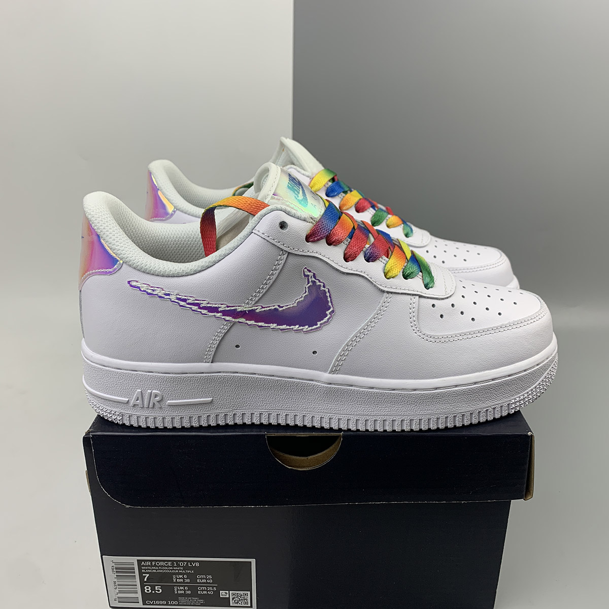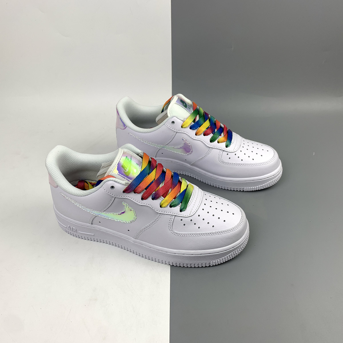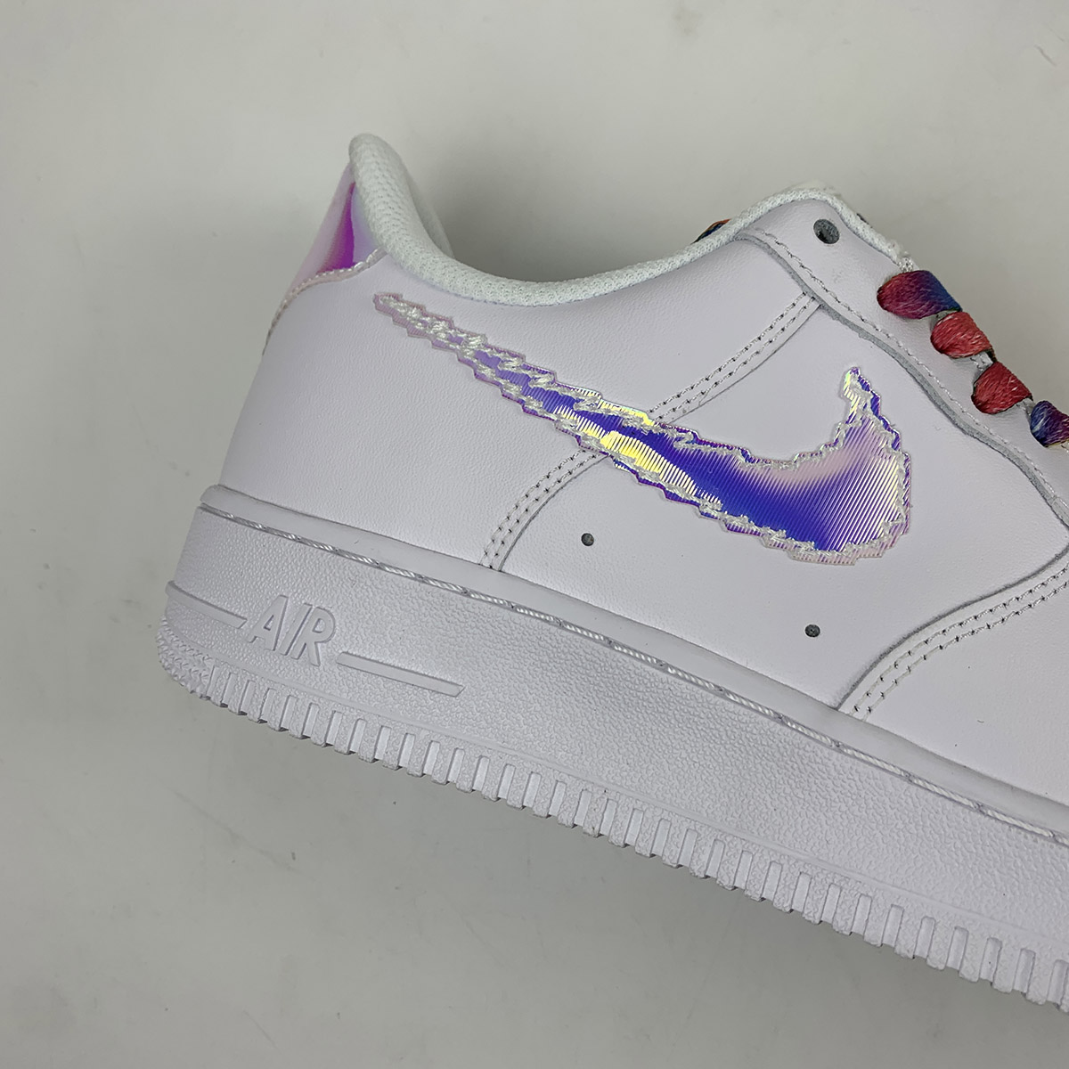 In a similar vein to the AF1 “Triple White Pixel” recently announced here, this latest addition to the forever expanding catalog offers another digitalized motif. The all-white premium leather upper with matching rubber sole unit underfoot provides the ultimate clean crisp backdrop for the remainder of the design. The blue shimmering pixel swoosh slightly changes color depending on its composition and looks like it’s straight out of an 80’s arcade game, matching heel and tongue overlays with “Nike Air” branding continue the theme. Completing the design is the black pixeled branding on the insoles.
