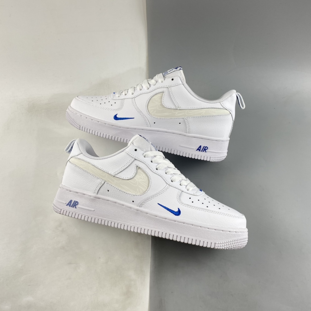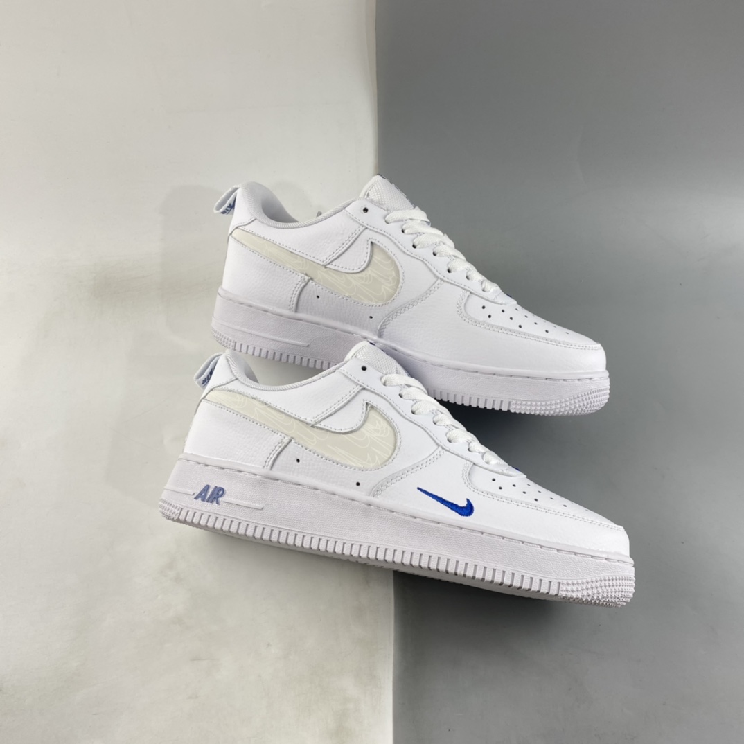 Reflective Swooshes serve as the highlight of this new colorway of the Nike Air Force 1 Low. This Nike Air Force 1 Low starts off with a buttery white tumbled leather construction all over the upper with tonal detailing seen on the tongues, laces, inner liner, heel tabs, and the entire AF1 rubber sole unit. For contrast we see the addition of royal blue branding on the tongue tags, heel pull tabs, and the Swooshes around the toe. The highlight of this Air Force 1 is the 3M reflective cut-out Swooshes on the side panels which also come with mini Swooshes inside. Air Force 1 fanatics can look for this clean colorway to release soon.
