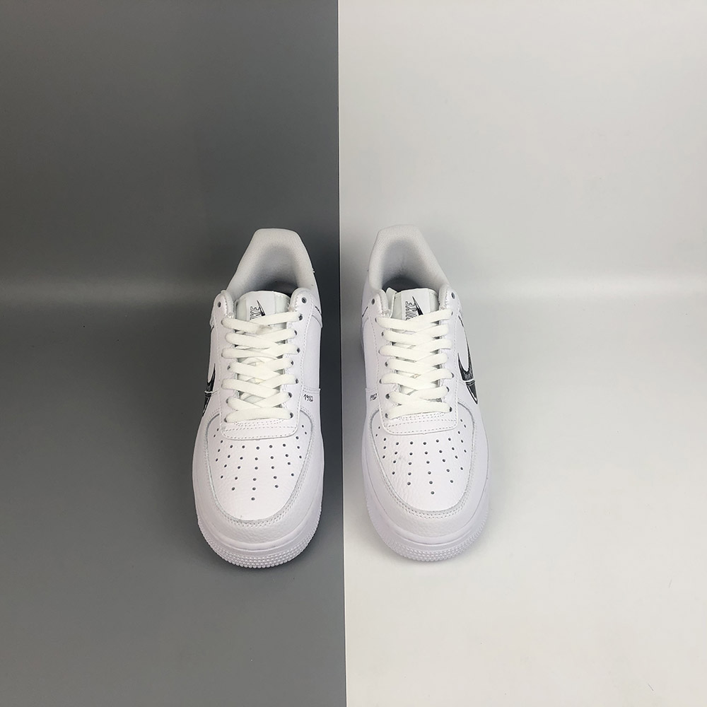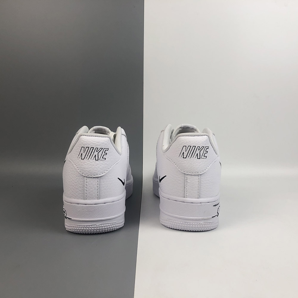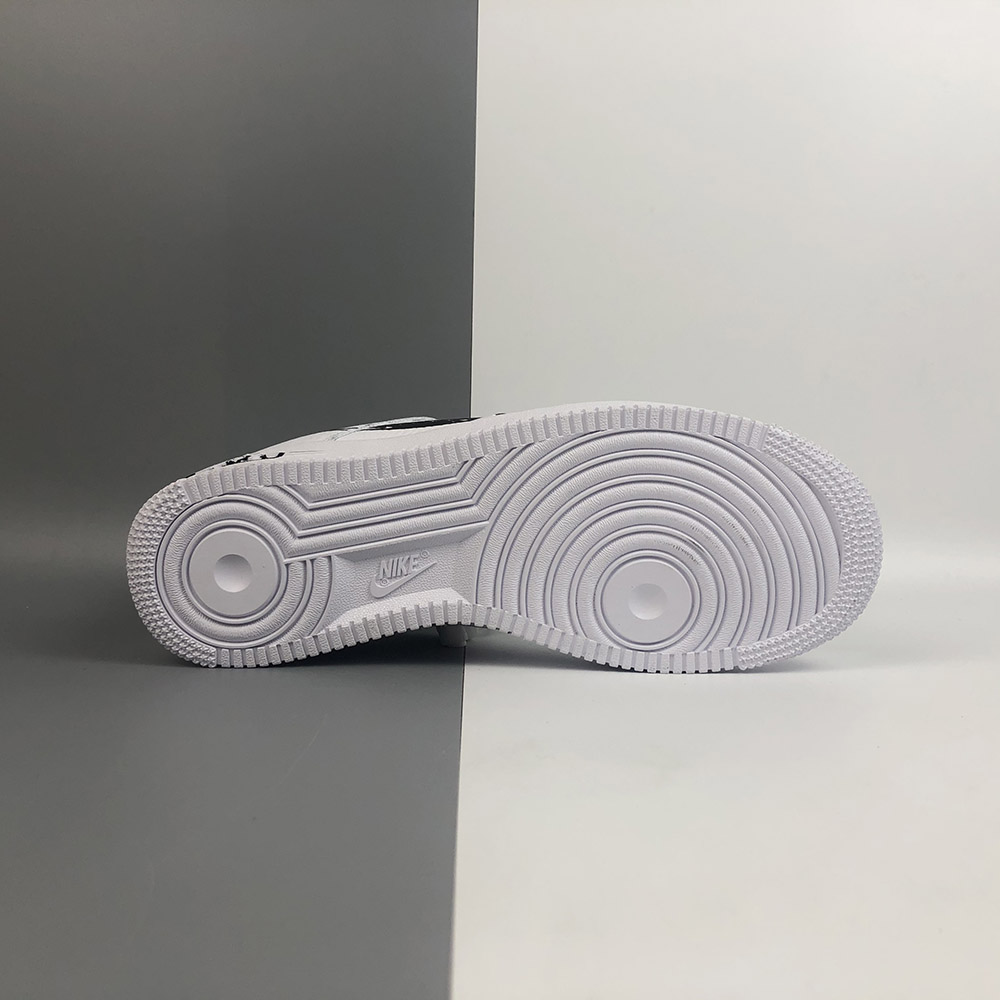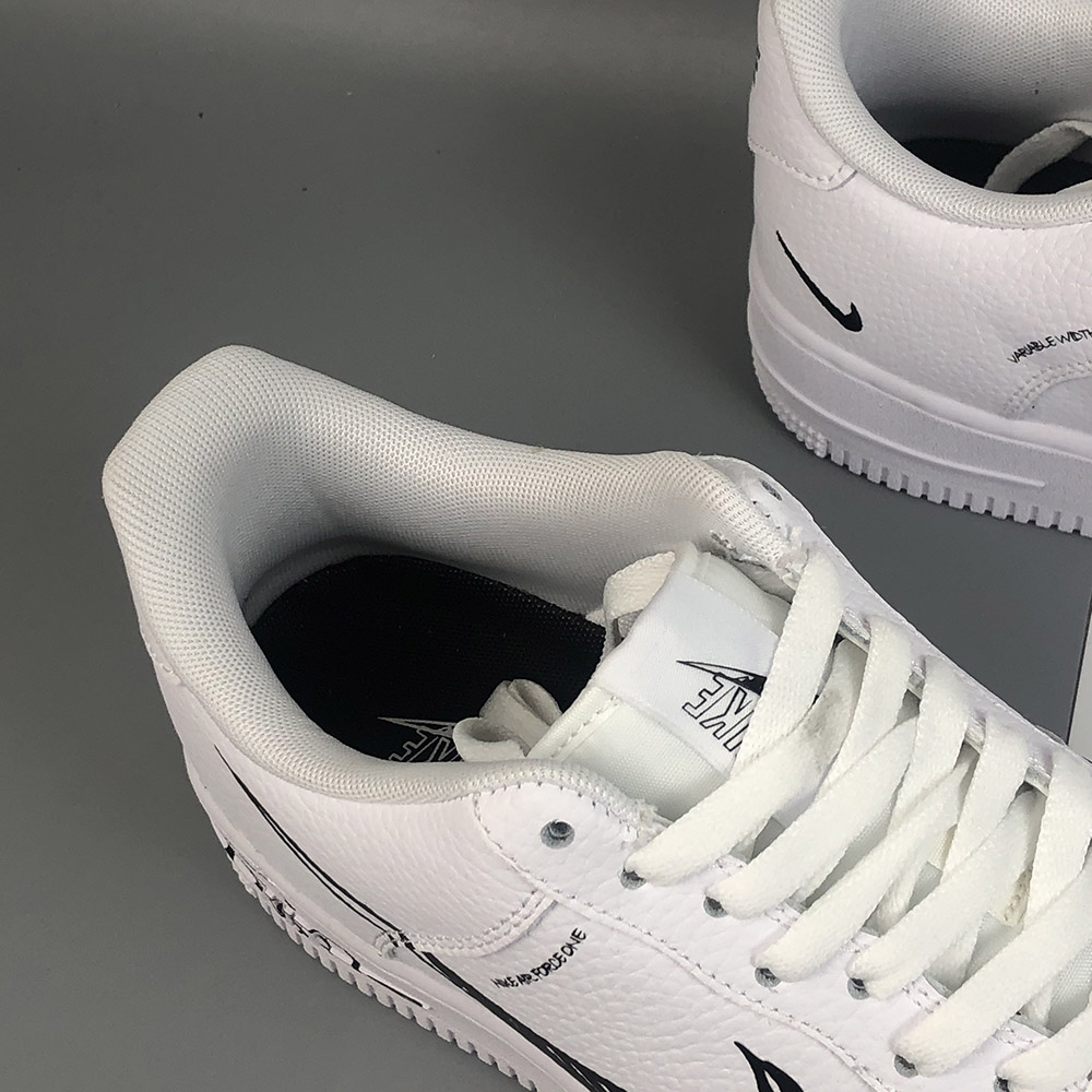 This offering of the Nike Air Force 1 Low features a White tumbled leather upper with matching laces and rubber sole. Highlighting the shoe are Black sketches throughout completed with a matching-colored insole.