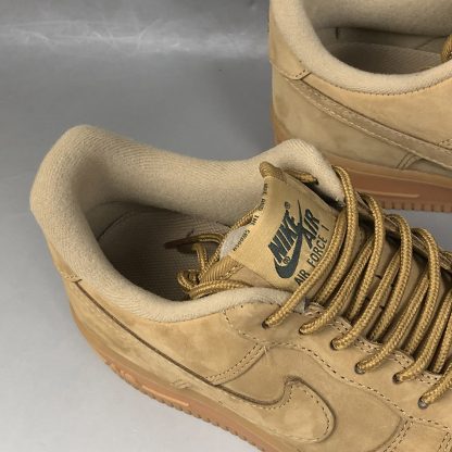 This Nike Air Force 1 Low features Wheat throughout while some of the smaller details have been modified to resemble a boot. For example we have metal eyelets along with rope laces. Other highlights for this pair includes tonal branding and a Gum rubber outsole to complete the look.