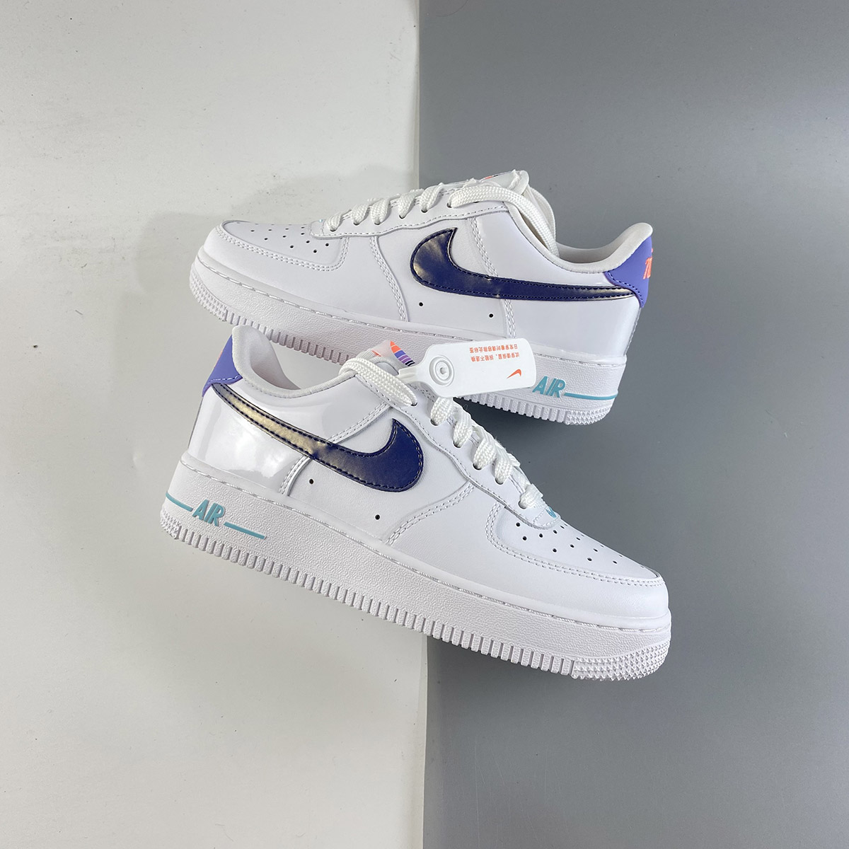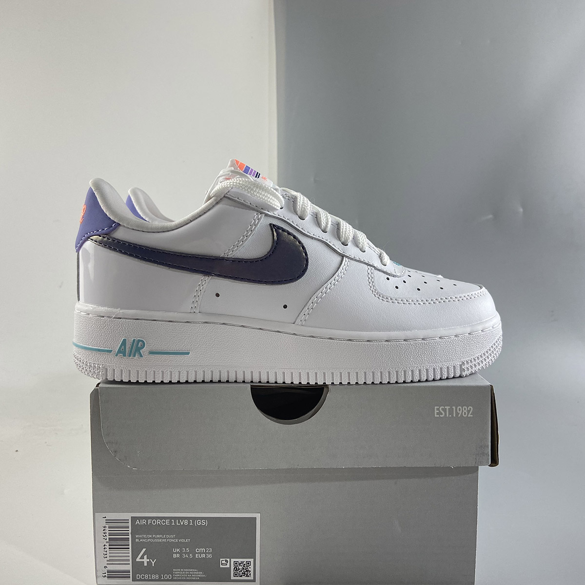 This Nike Air Force 1 Low comes dressed in a White, Light Thistle, Copa, and Dark Purple Dust color combination. Utilizing White leather across the upper with iridescent on the Swoosh logos across the panels. Next, a sunset logo hits the tongue while Orange embroidered branding lands on the heel. Lastly, Orange adorns the insoles while White lands on the midsole and outsole to finish the look.