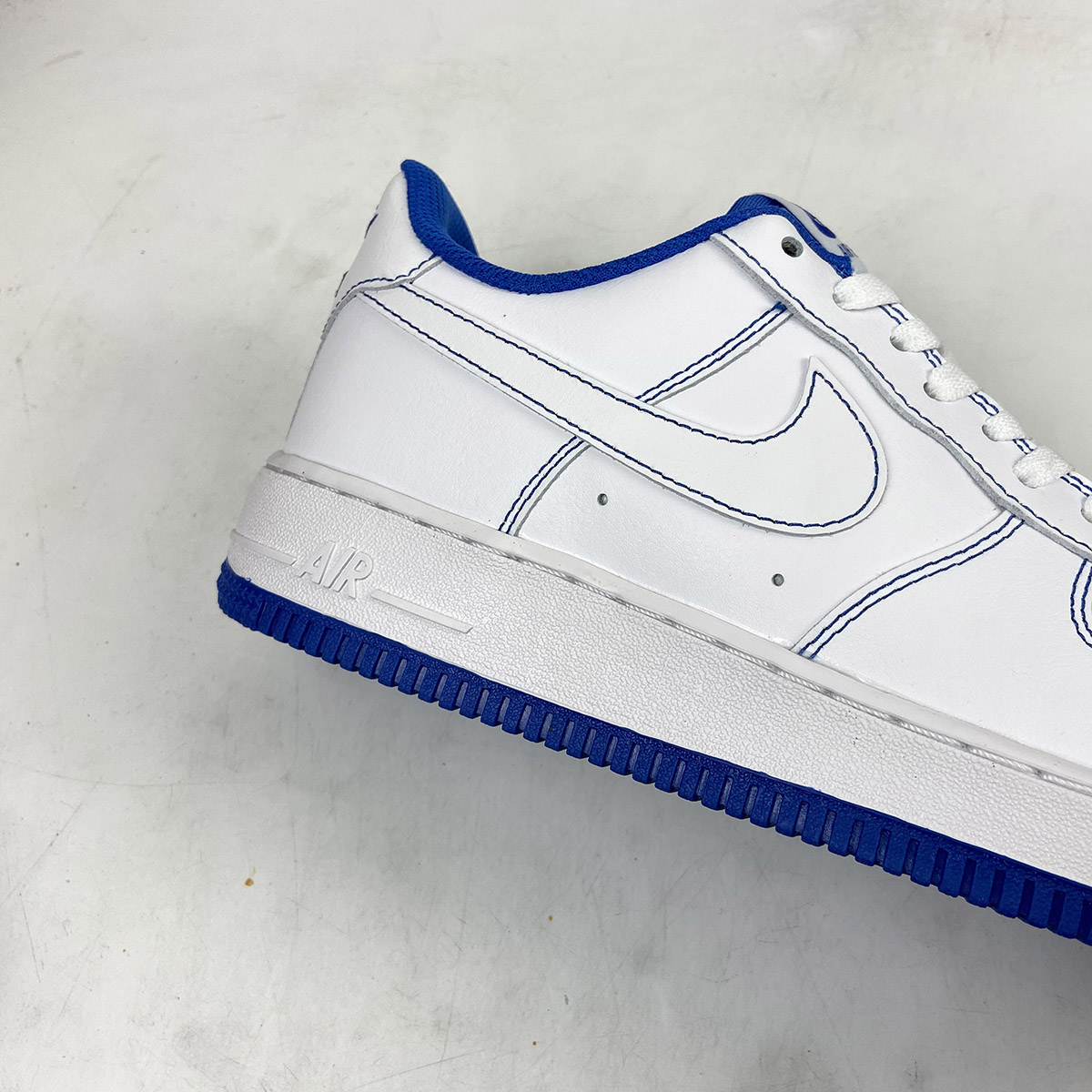 In terms of construction, nothing much has changed. A low-top profile decked out with super smooth leather overlays from heel to toe in white, a perforated toe box and chunky Air midsole unit beneath the feet, these are still a classic. However, what sets this apart from the typical Nike AF1s you’ve seen before are blue stitches throughout the structure. The sock liner, the durable rubber outsole and Swoosh-branded tongues and heels also indulge in a matching tone of blue for an additional pop of contrast.