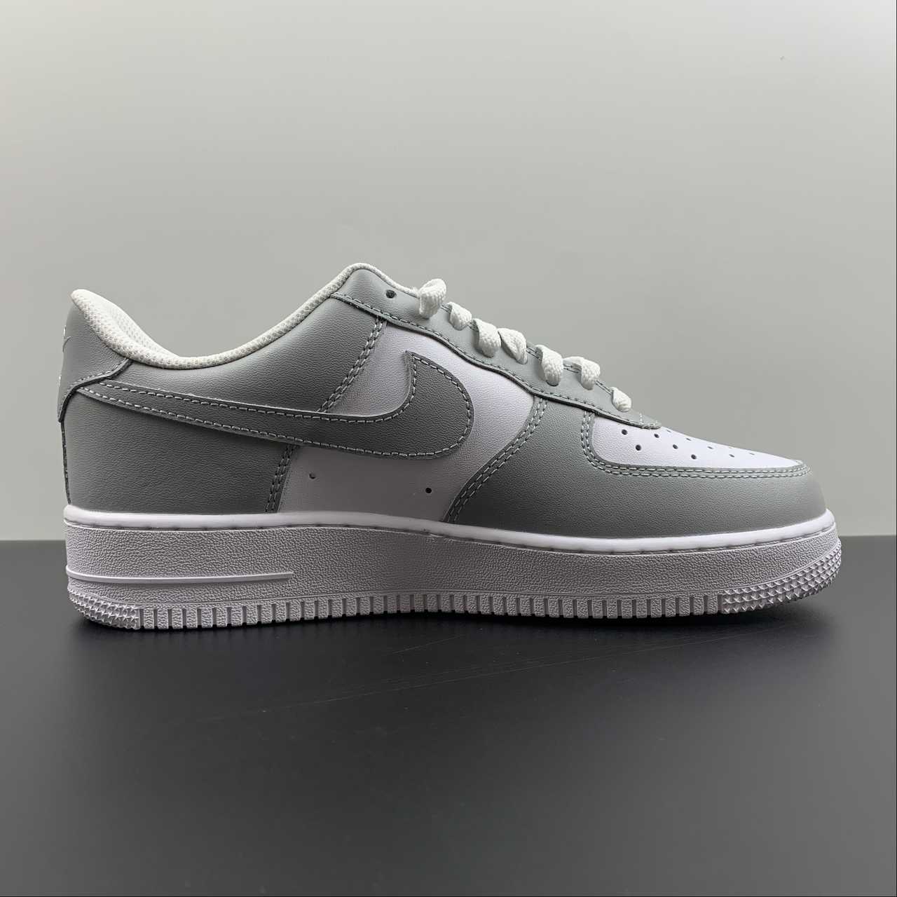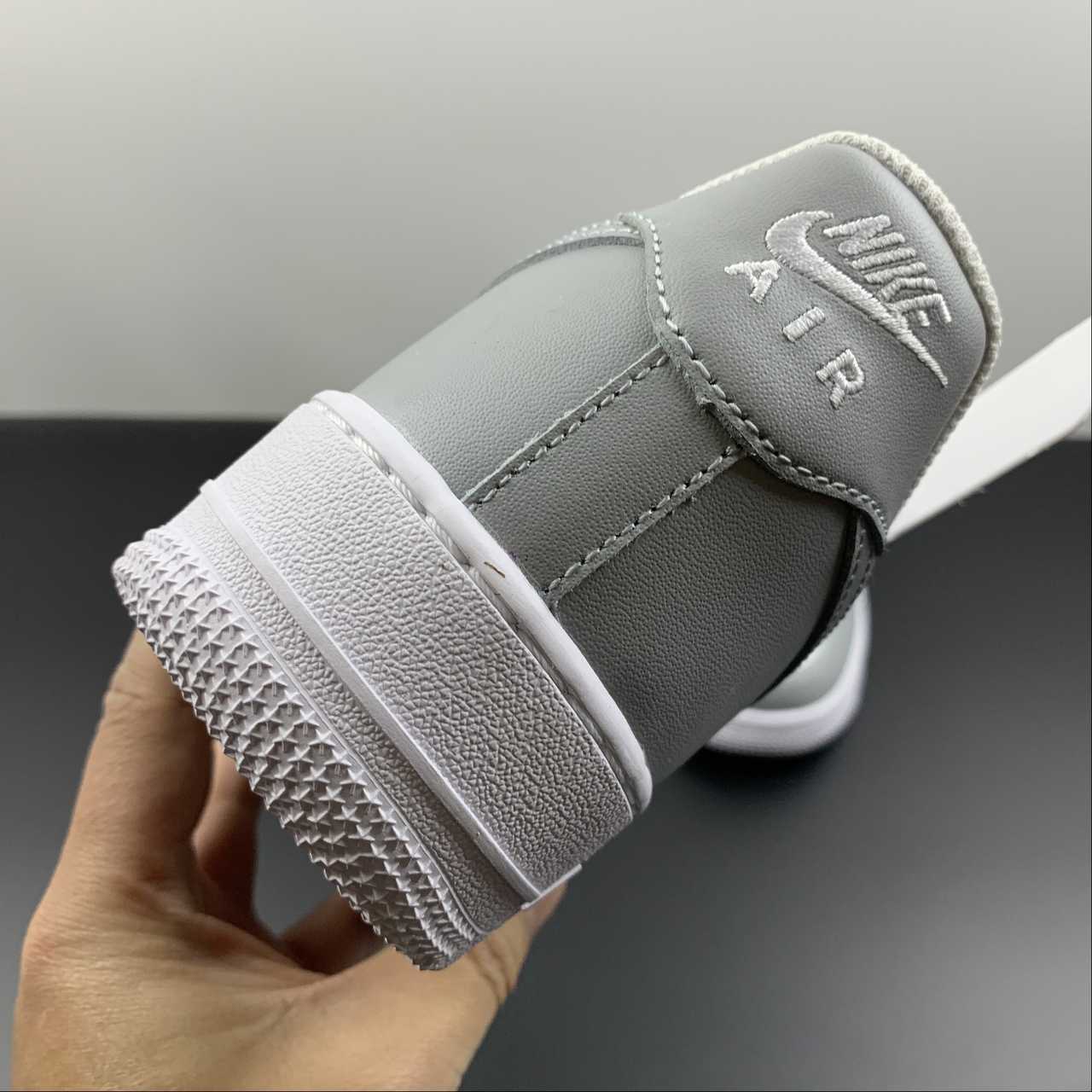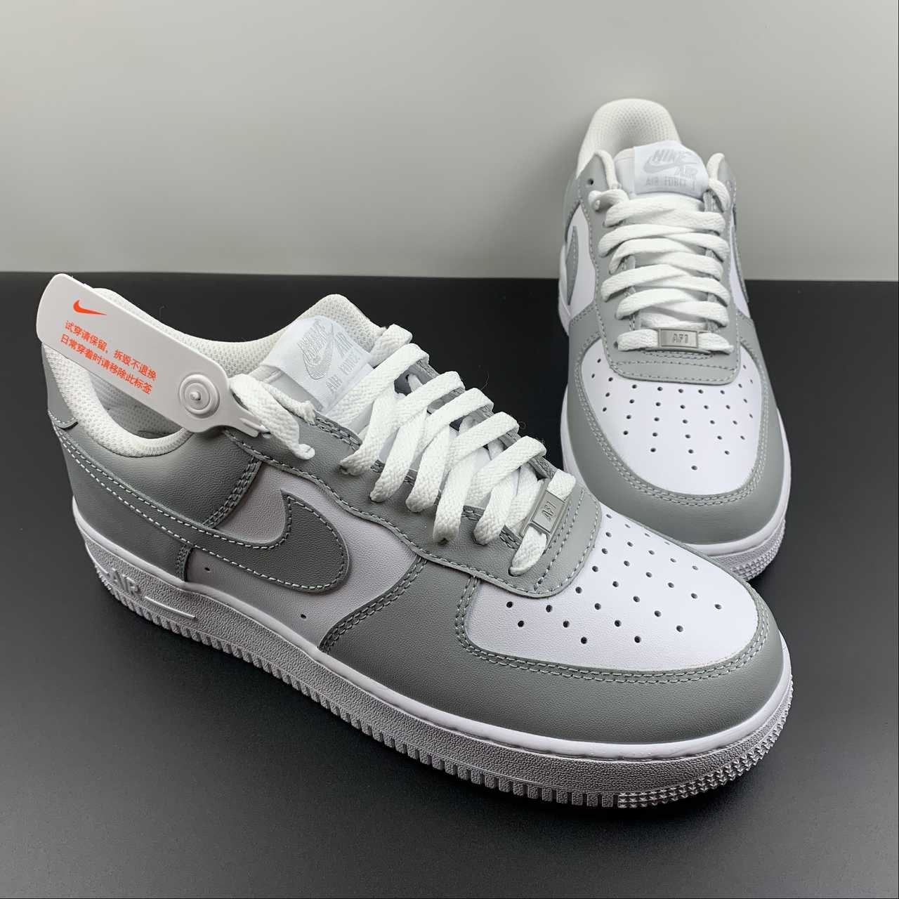 This offering of the Nike Air Force 1 Low comes dressed in a two-tone, White and Wolf Grey color blocking constructed with a full leather base, mesh tongues and lining. A solid White AF1 rubber sole completes the simple design.