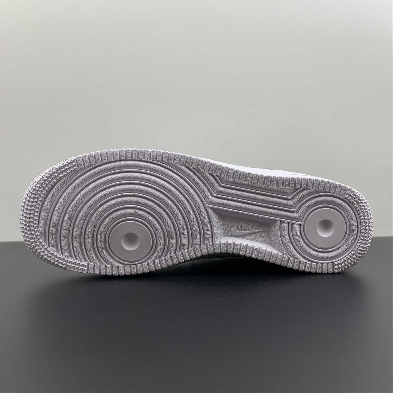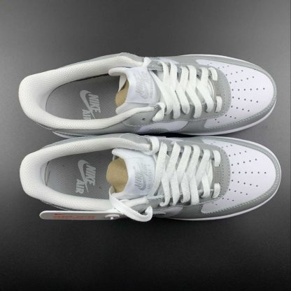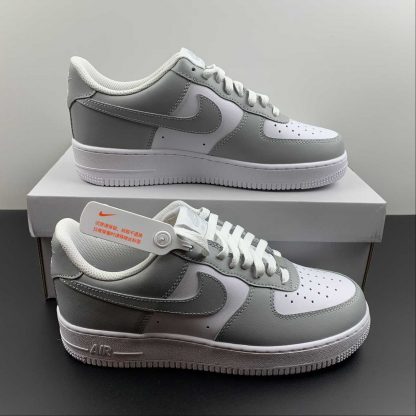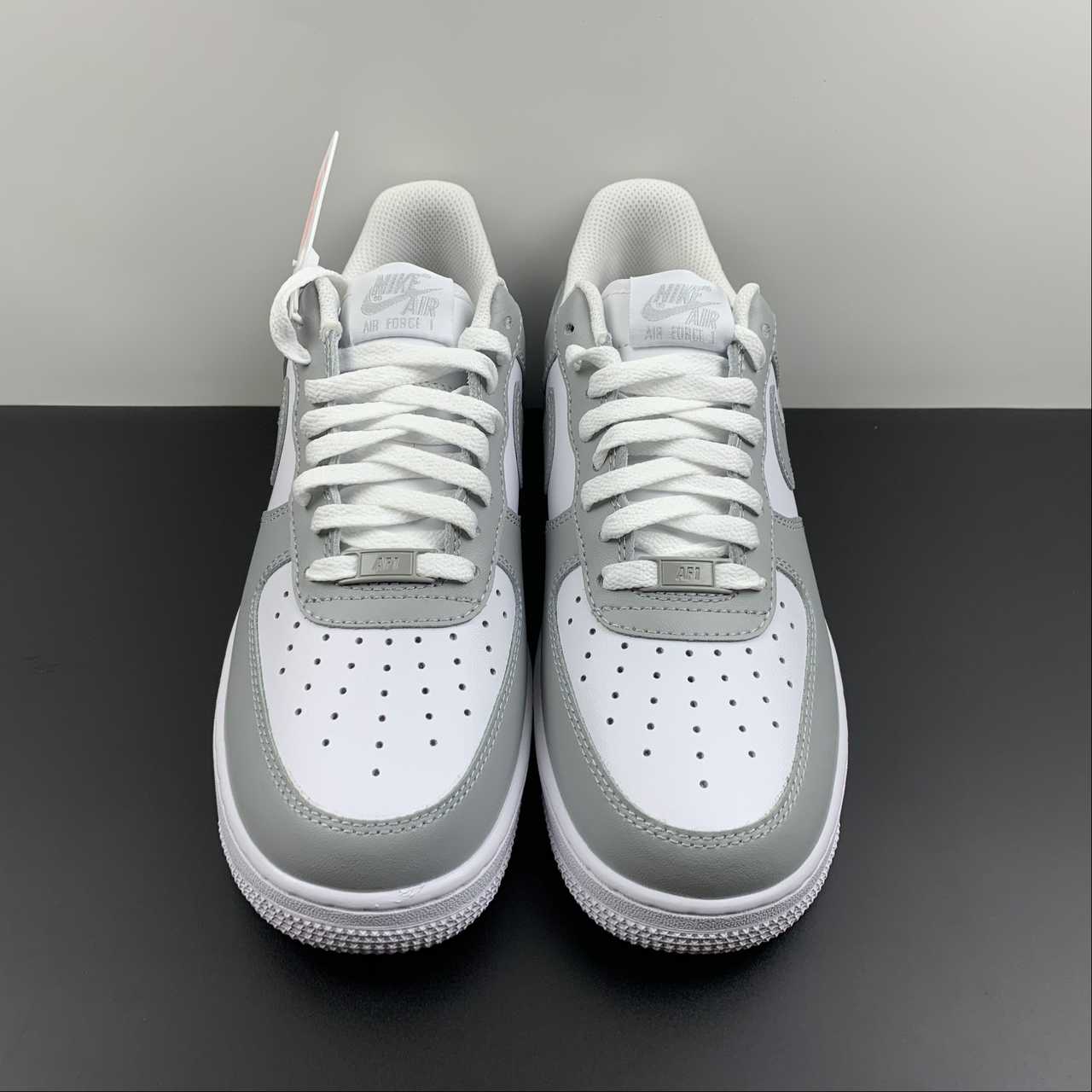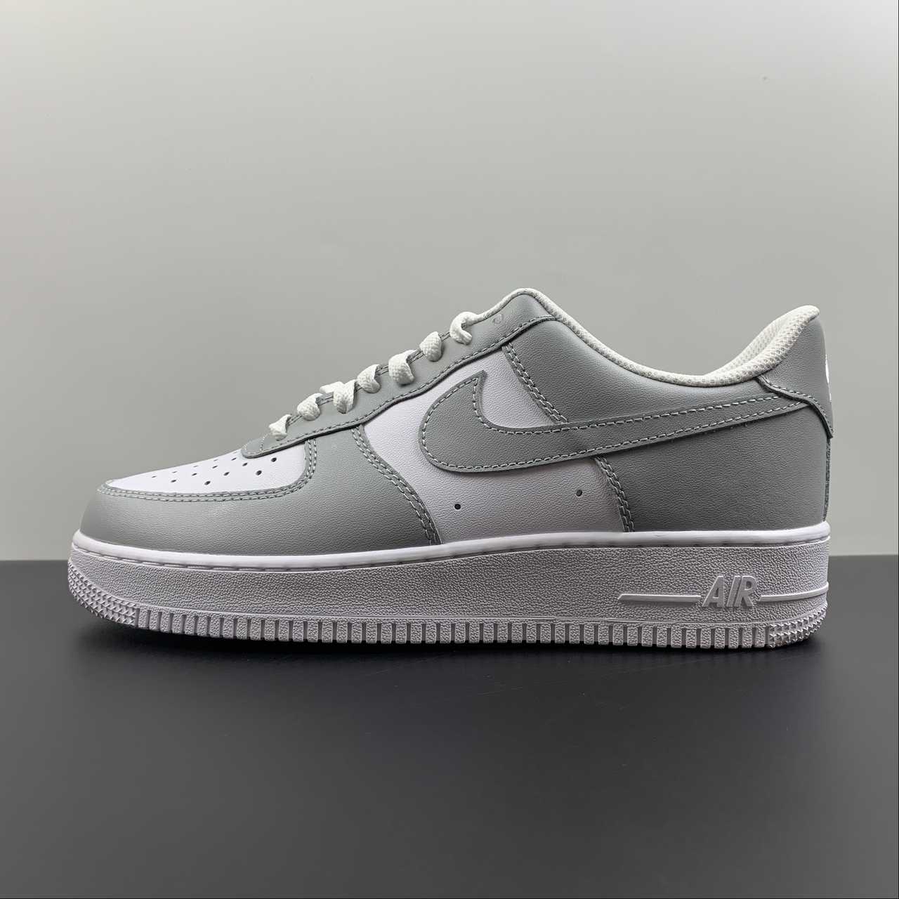 This offering of the Nike Air Force 1 Low comes dressed in a two-tone, White and Wolf Grey color blocking constructed with a full leather base, mesh tongues and lining. A solid White AF1 rubber sole completes the simple design.