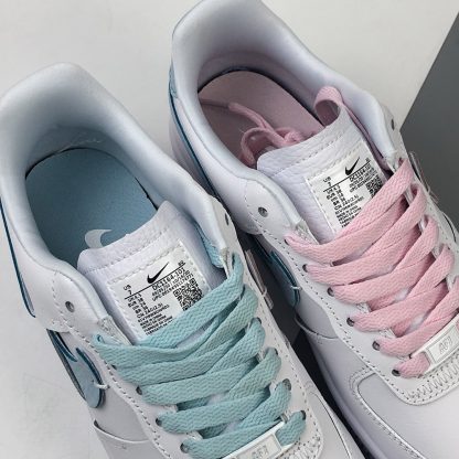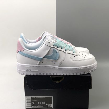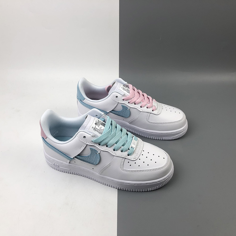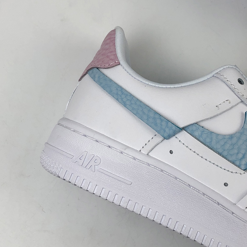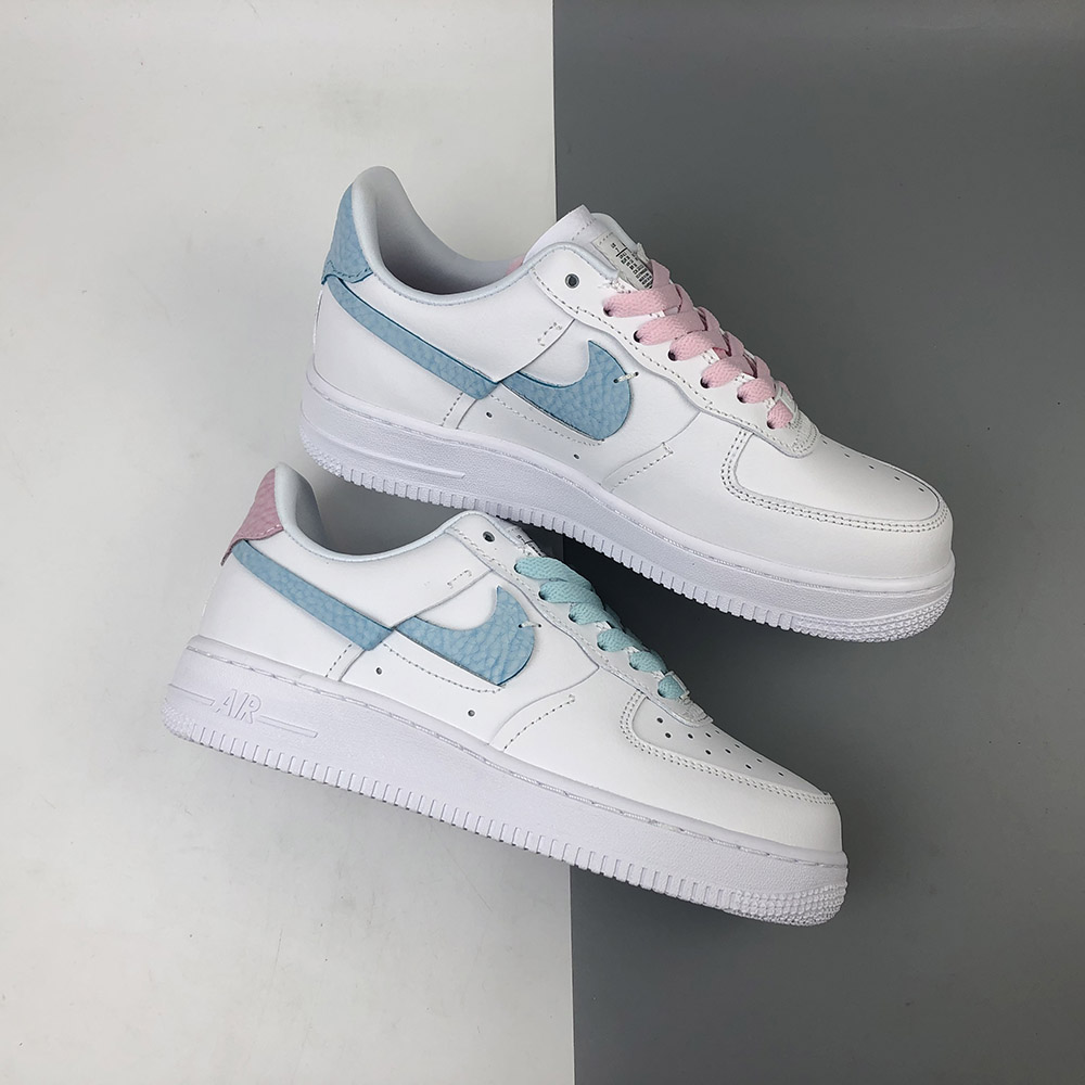 Dressed in a White, Pink Rise and Bleached Aqua color combination. Featuring White leather on the base while crocodile-like print is seen on the Swoosh and heel tab. On the left shoe we have Pink on the lateral side and Aqua on the medial while the right shoe features the reverse. Other details includes the size tag on the tongue, White on the midsole and rubber outsole.