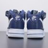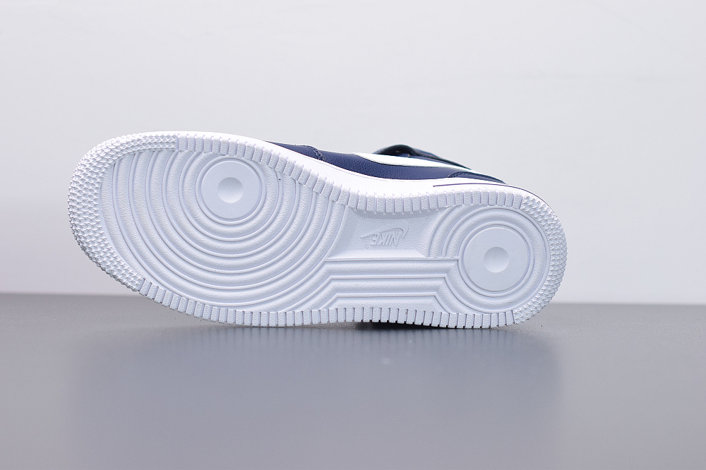 This offering the shoe features a full Navy leather build with perforated holes on the toe pairs with White leather Swoosh logos. White continues on the tongue label, insole, heel, strap and rubber sole.