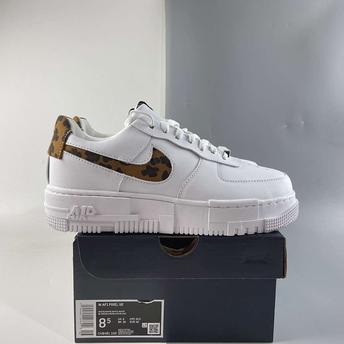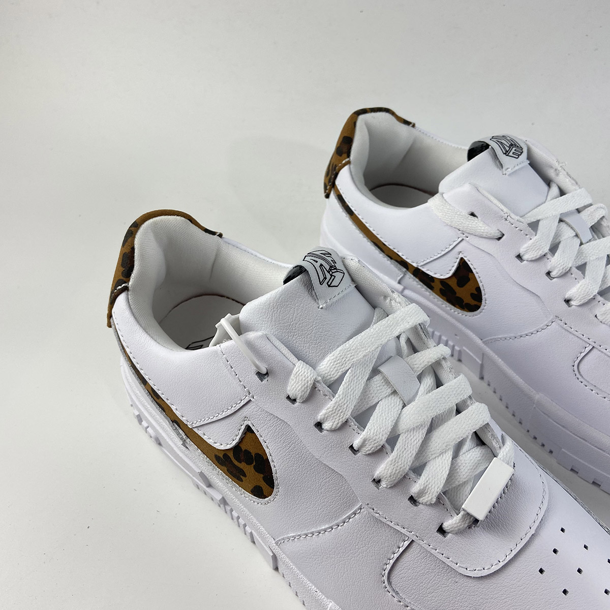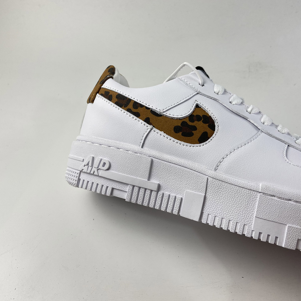 Even before introducing the vibrant leopard print onto the swoosh and heel, the Air Force 1 Low Pixel is already a statement-making model. The clean lines and inverted swoosh on the leather upper are subtle details that differentiate the pair from the standard Air Force 1. The truly defining element is the sole unit, which dons a distorted look sure to turn heads. The leopard pattern and sketch-like branding on the tongue and heel only add to the boldness factor. Despite all the edgy details, a clean white base makes the pair a potential everyday staple.