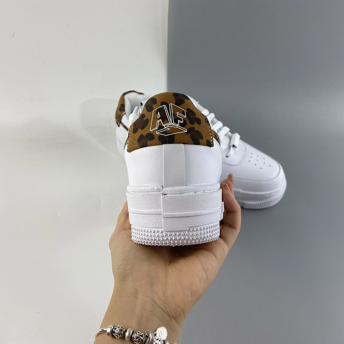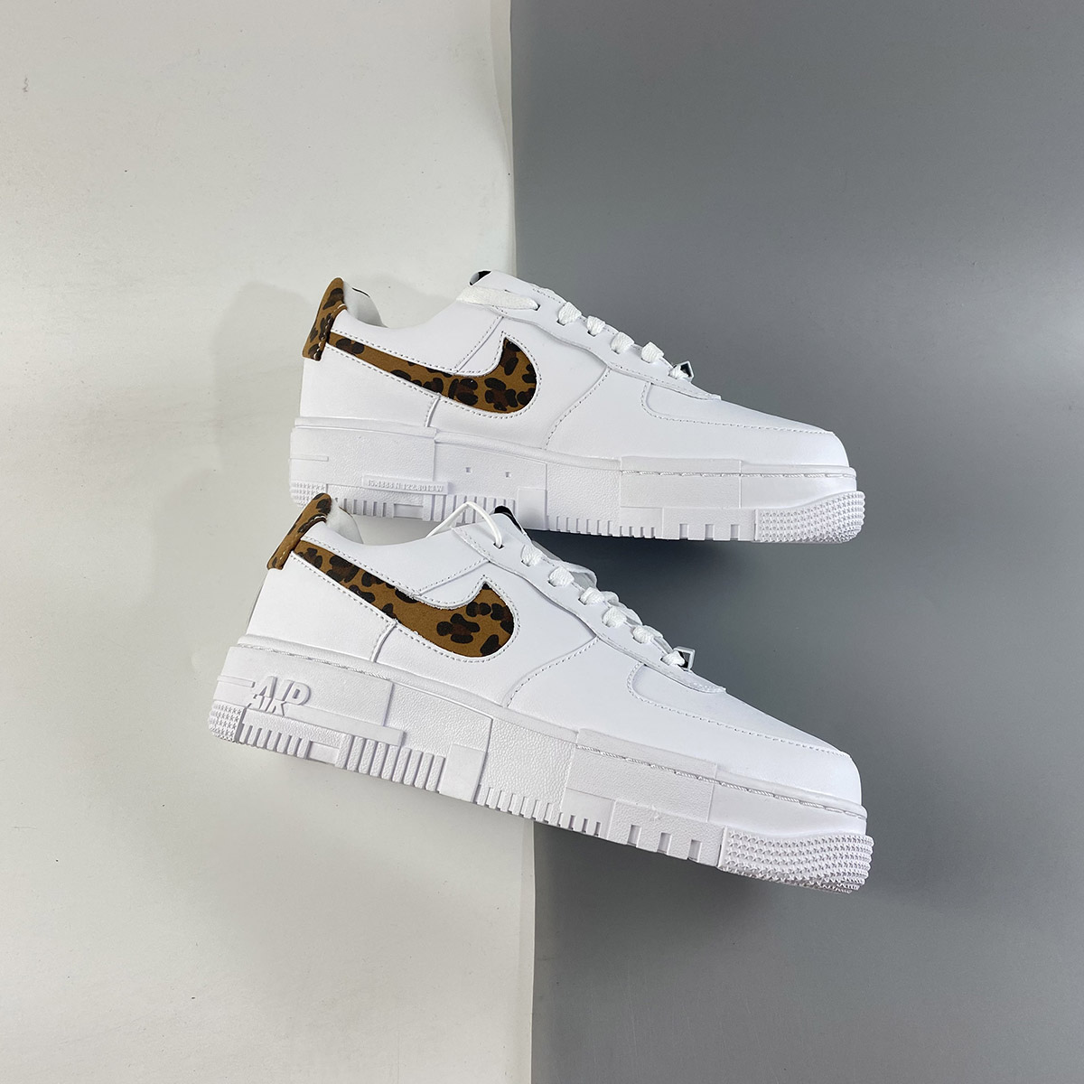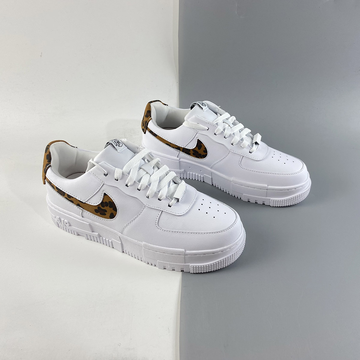 Even before introducing the vibrant leopard print onto the swoosh and heel, the Air Force 1 Low Pixel is already a statement-making model. The clean lines and inverted swoosh on the leather upper are subtle details that differentiate the pair from the standard Air Force 1. The truly defining element is the sole unit, which dons a distorted look sure to turn heads. The leopard pattern and sketch-like branding on the tongue and heel only add to the boldness factor. Despite all the edgy details, a clean white base makes the pair a potential everyday staple.