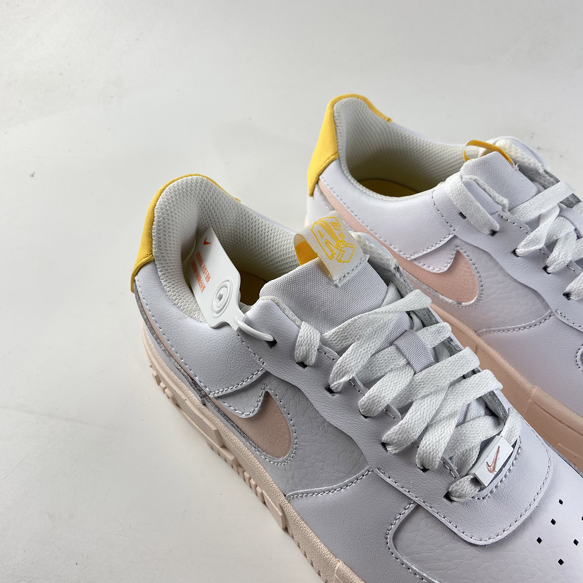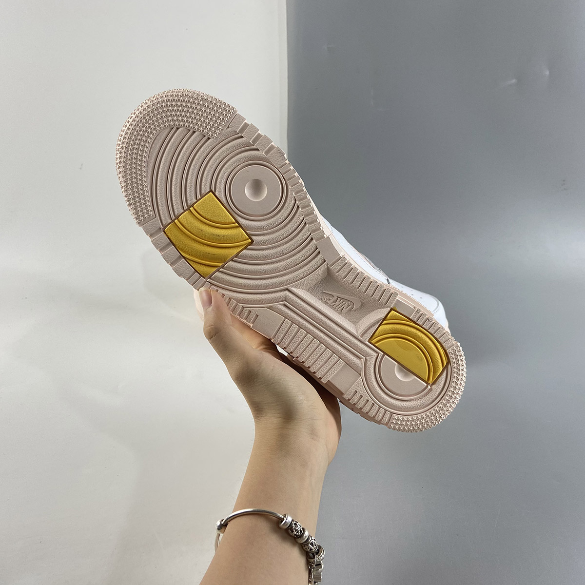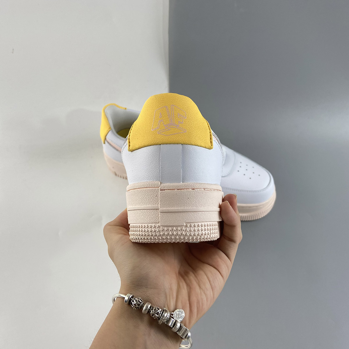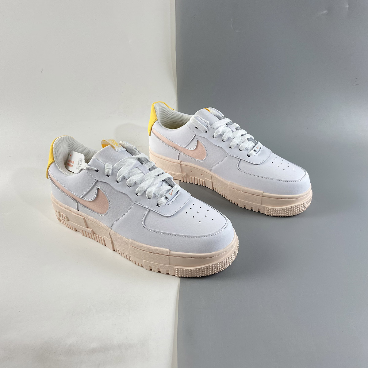 Dressed in a White, Arctic Orange, Sail, and Orange Pearl color scheme. This offering of the Nike Air Force 1 Pixel features a White leather upper with mesh tongues. Highlighting the shoe are the Orange hues on the tongues, rear overlays, cut-out Swooshes, and insoles. A Pinkish-colored rubber sole completes the design.