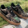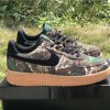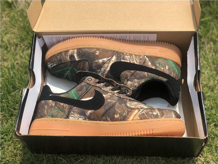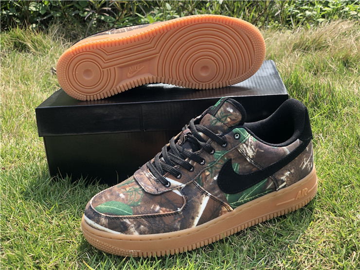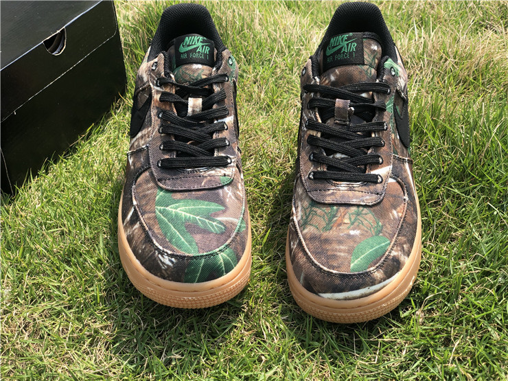 Fashioned from a heavy canvas material, a traditional realtree print adorns the upper for an aesthetic that is made to stand out and blend in at the same time. Accented by black nubuck, the Air Force 1 Realtree Camp Green Camo sits atop an Air-infused midsole which is further completed with a gum rubber sole unit.