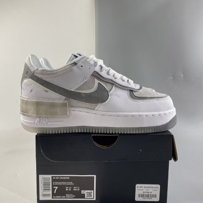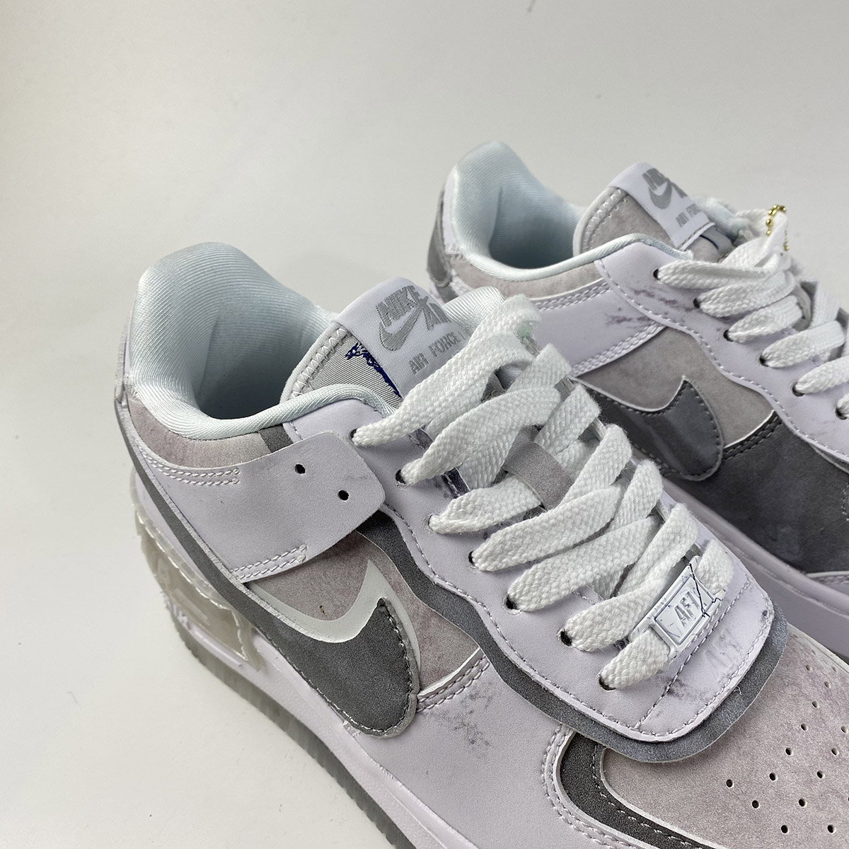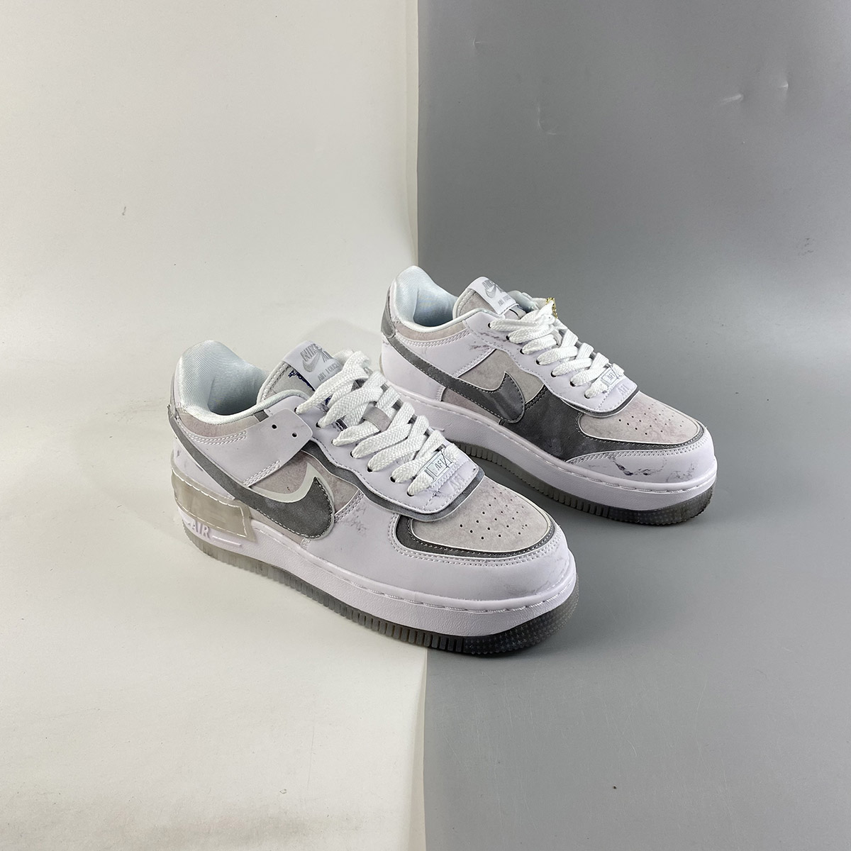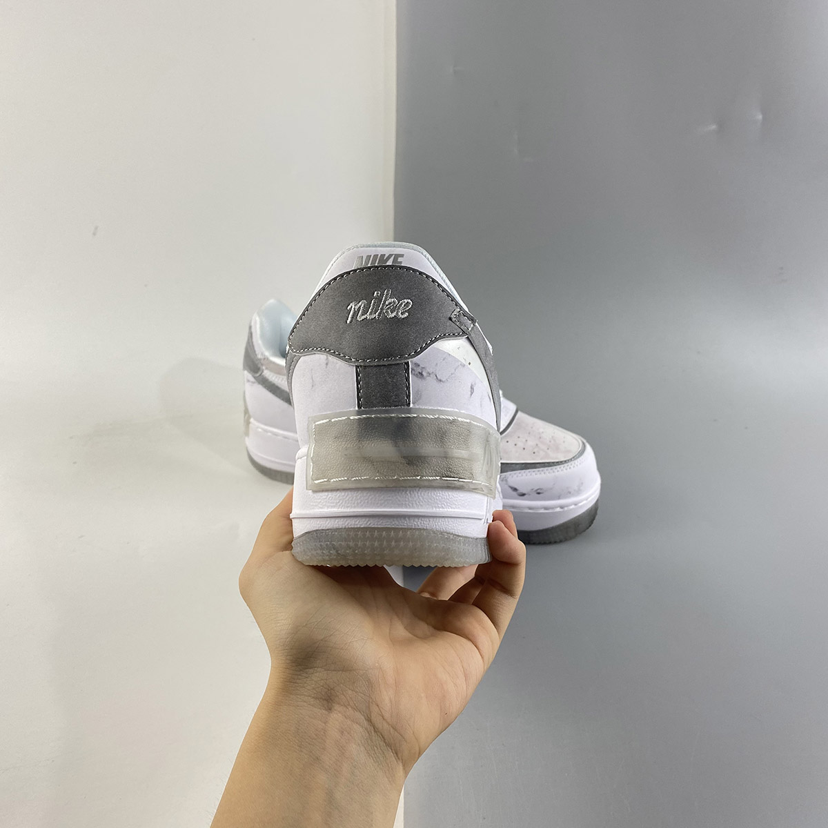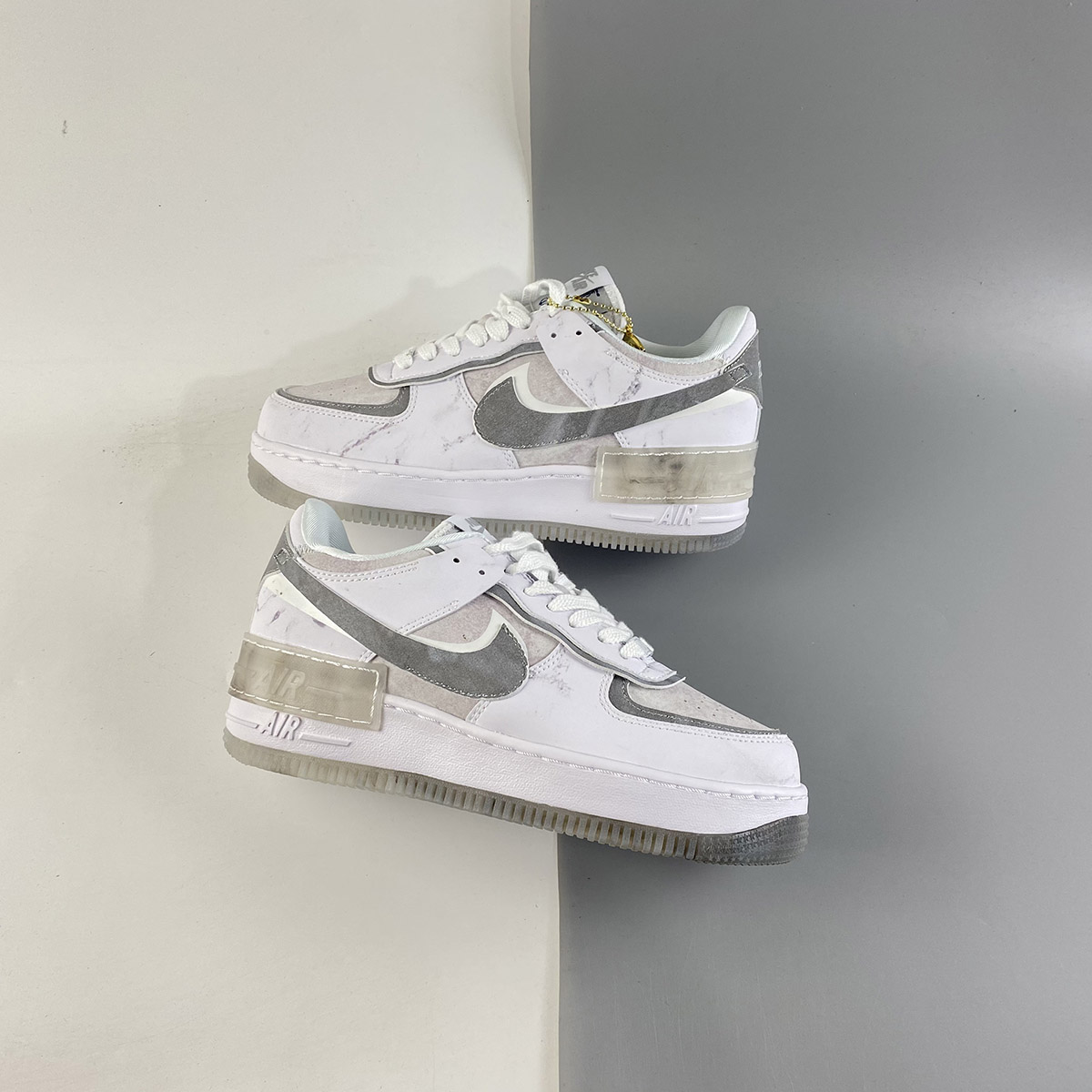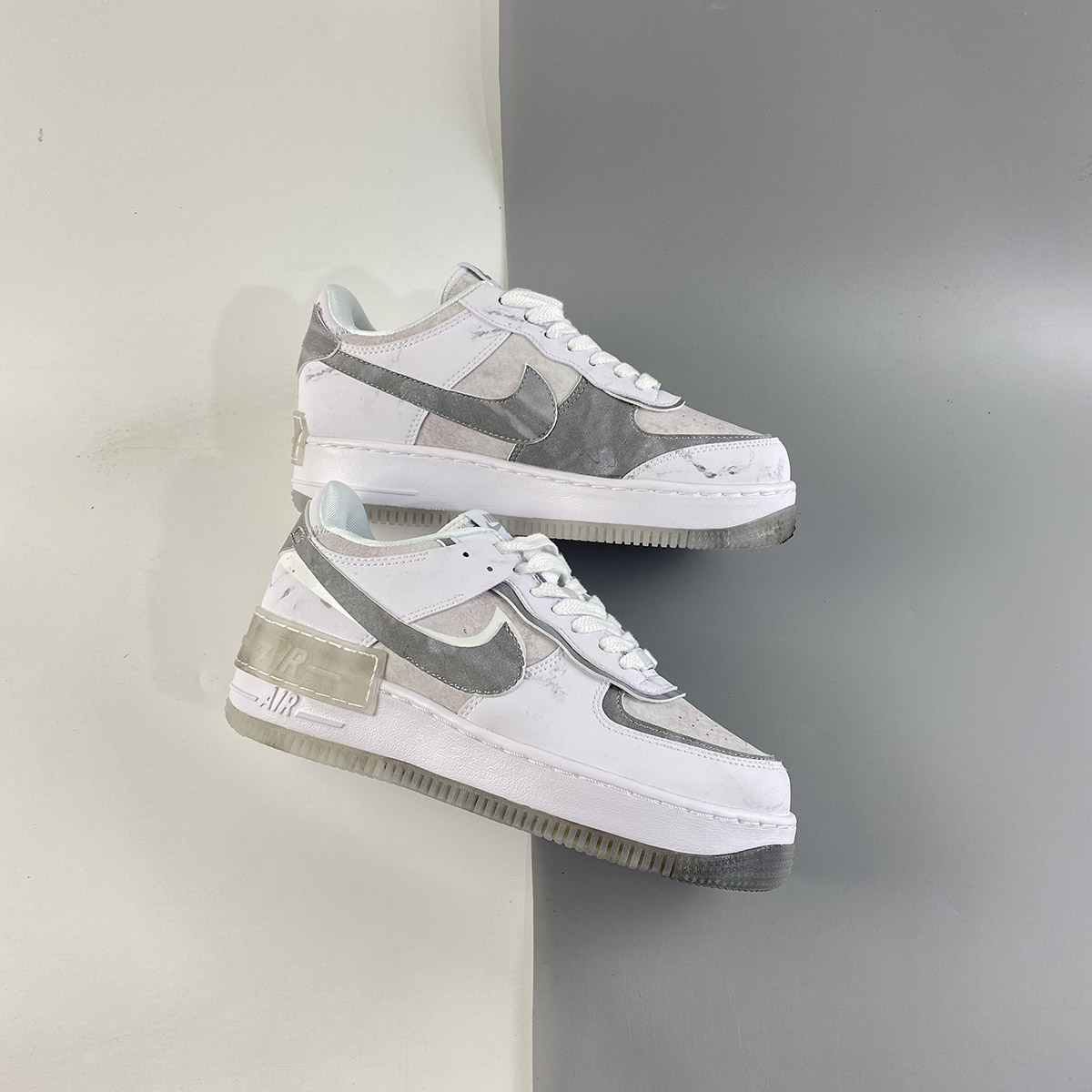 this Nike Air Force 1 Shadow comes with wrapping paper across the upper that can be removed. By the heel, we have ‘Goddess of Victory’ written in Navy, who is the daughter of Pallas. You can also see the mythical figure on the insoles. Once the tissue paper is removed, the upper comes with a stone-like makeover that resembles the historic statues. Finally, mostly White lands on the rubber outsole.