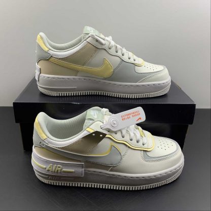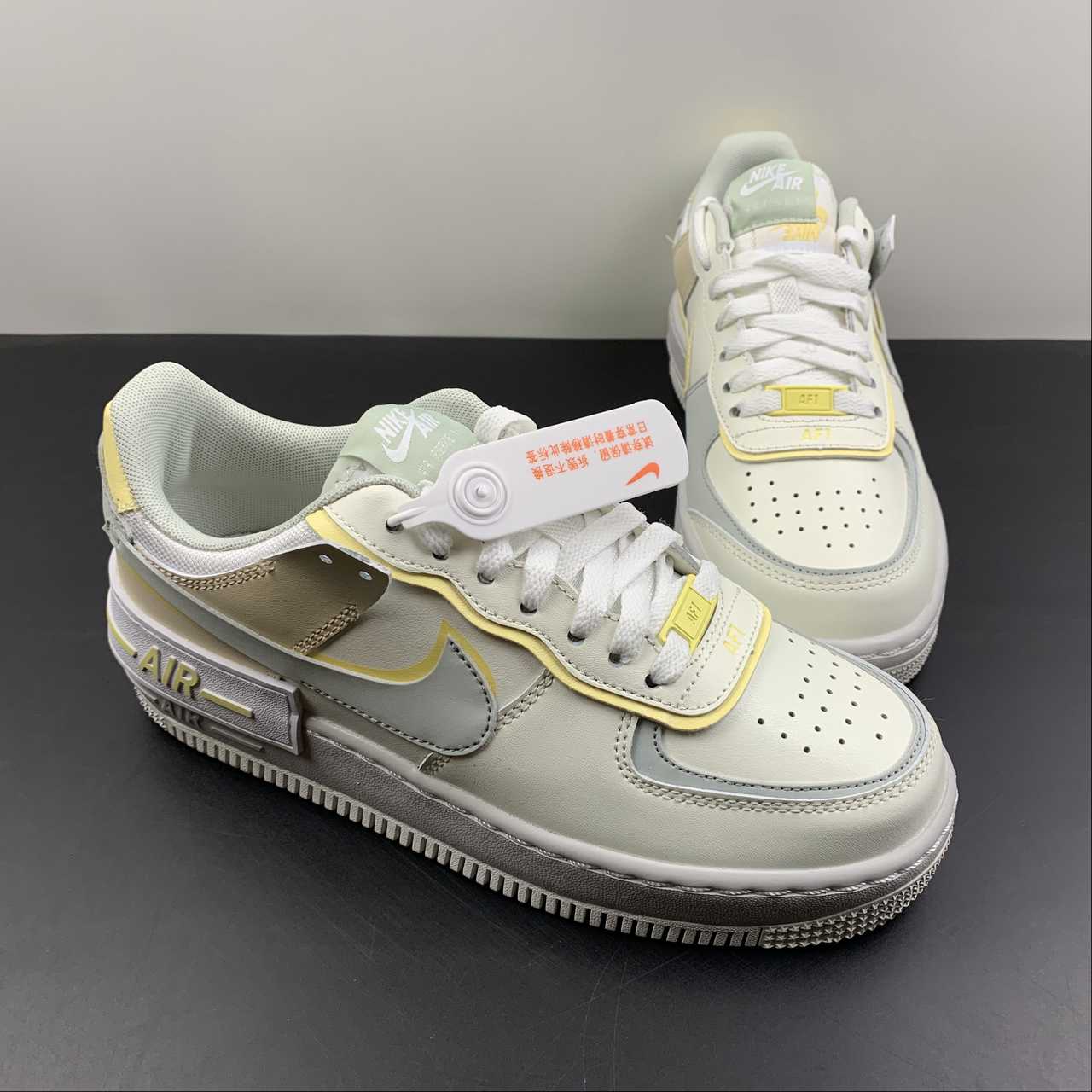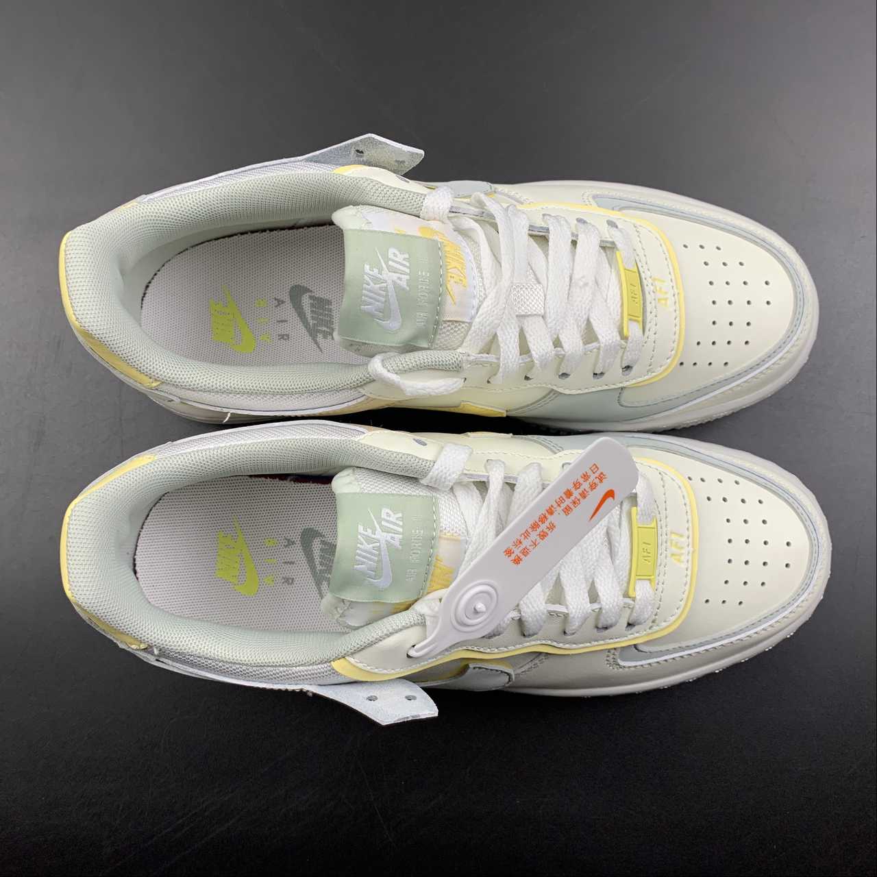 Done in an official color scheme listed as Sail, Light Silver, and Citron Tint, this pair is constructed in a mix of leather and mesh materials consisting of a White base that is then detailed with the pastel contrasting accents. The solid Sail rubber sole matches up nicely with the aesthetics of the upper.