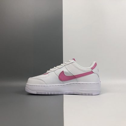 “White/Magic Flamingo” adds bubblegum accents to a a triple white colorway — the sneaker’s Swoosh and midsole “AIR” branding are doubled in the bright pink hue. Layered pink paneling at the eyestay adds an additional pop of color, while Nike’s logo is similarly embroidered in pink at the heel. An insole printed with mirrored Nike Air branding completes the sneaker’s doubling.
