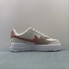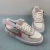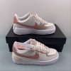 This offering of the Nike Air Force 1 Shadow comes constructed in a mix of smooth and tumbled leather, and mesh materials with a layered aesthetic. It features a White and Sail base highlighted with Pink contrasting accents on the Swooshes, heels, tongue labels, eyestay, and insoles. A solid White AF1 rubber sole completes the design.