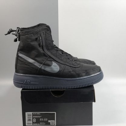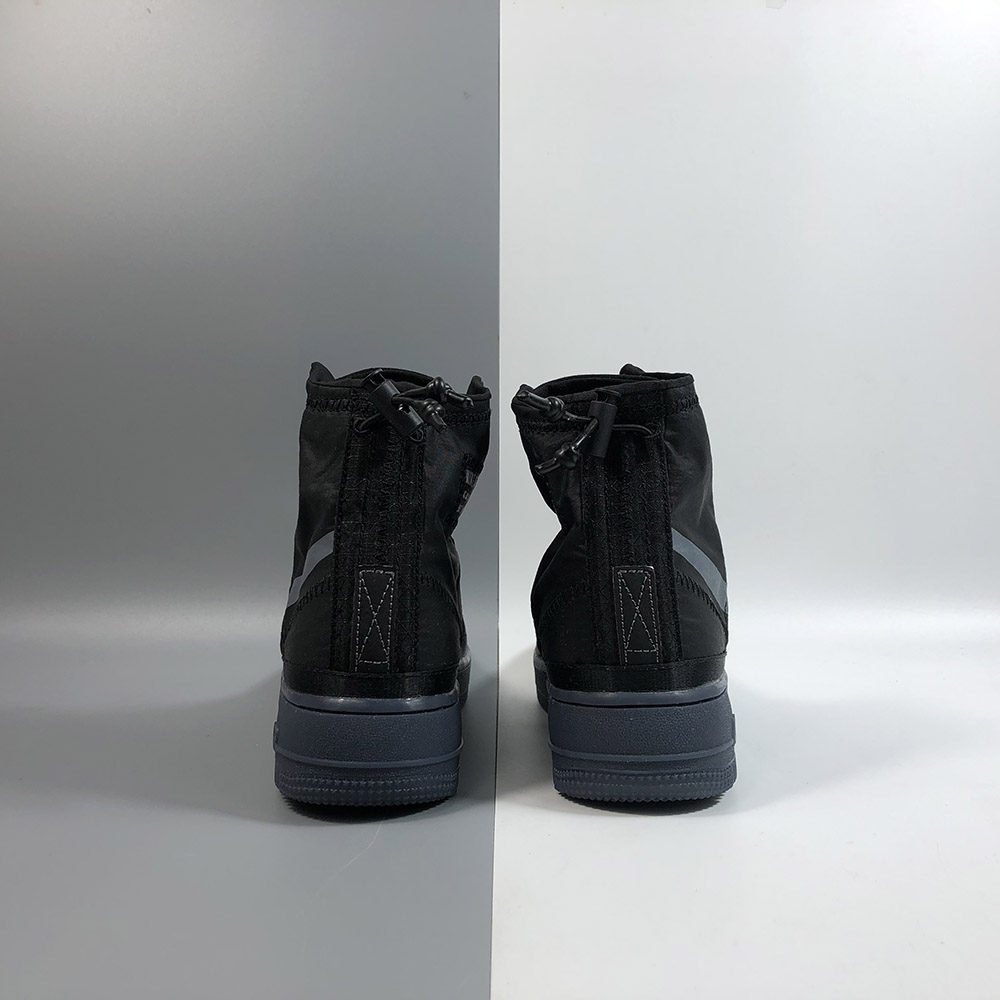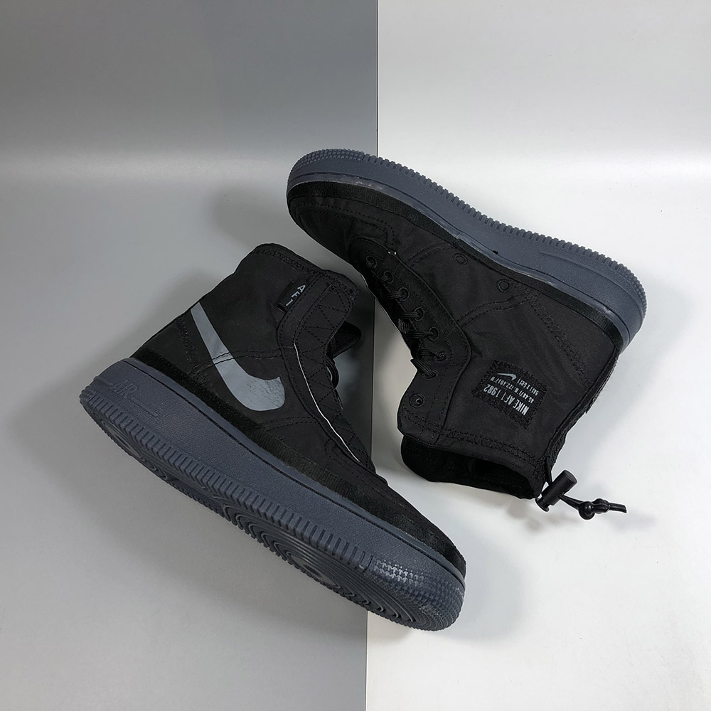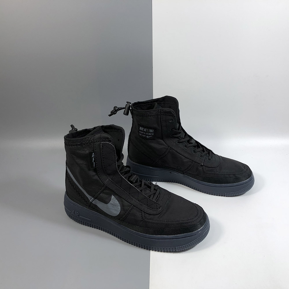 Shown here are two upcoming color options, one in Tan/Grey and the other in Black/Grey. Both are constructed with a high-cut synthetic shell upper that adds a toggle lacing system. An embroidered ripstop badge on the medial side, Swoosh logos on the lateral with a sherpa fleece insole to keep your feet cozy and warm. Both are completed with semi-translucent AF1 soles.