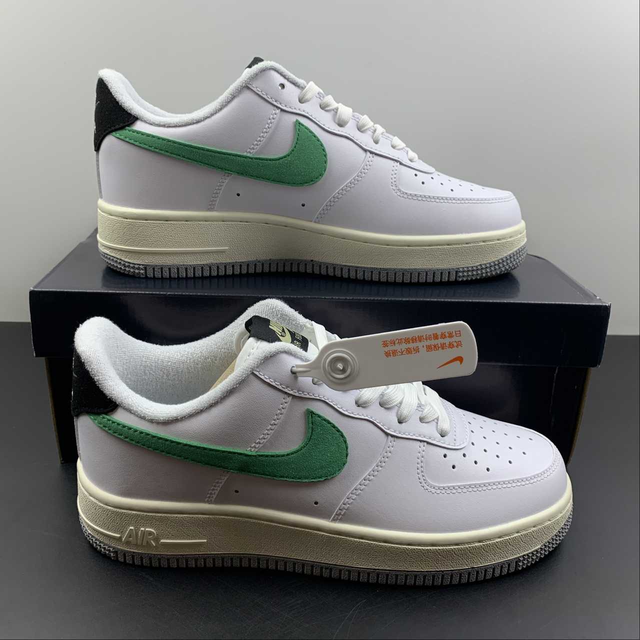 Save its branded tabs and Swoosh, the entirety of the upper renders a clad crisp white treatment across its smooth leather overlays, mesh tongue, laces and fuzzy sock liner, setting the stage with a beaming base layer. Utilizing the opposite of the tonal spectrum, jet-black contrasts lay claim to the canvas tongue and suede back tabs whereas its midfoot Swooshes proffer a pre-worn suede coated in a forest green hue. Underfoot, an aged vanilla-shaded midsole harkens additional 80s vibes throughout the updated construction while a speckled light grey tread concludes the silhouette’s design elements.